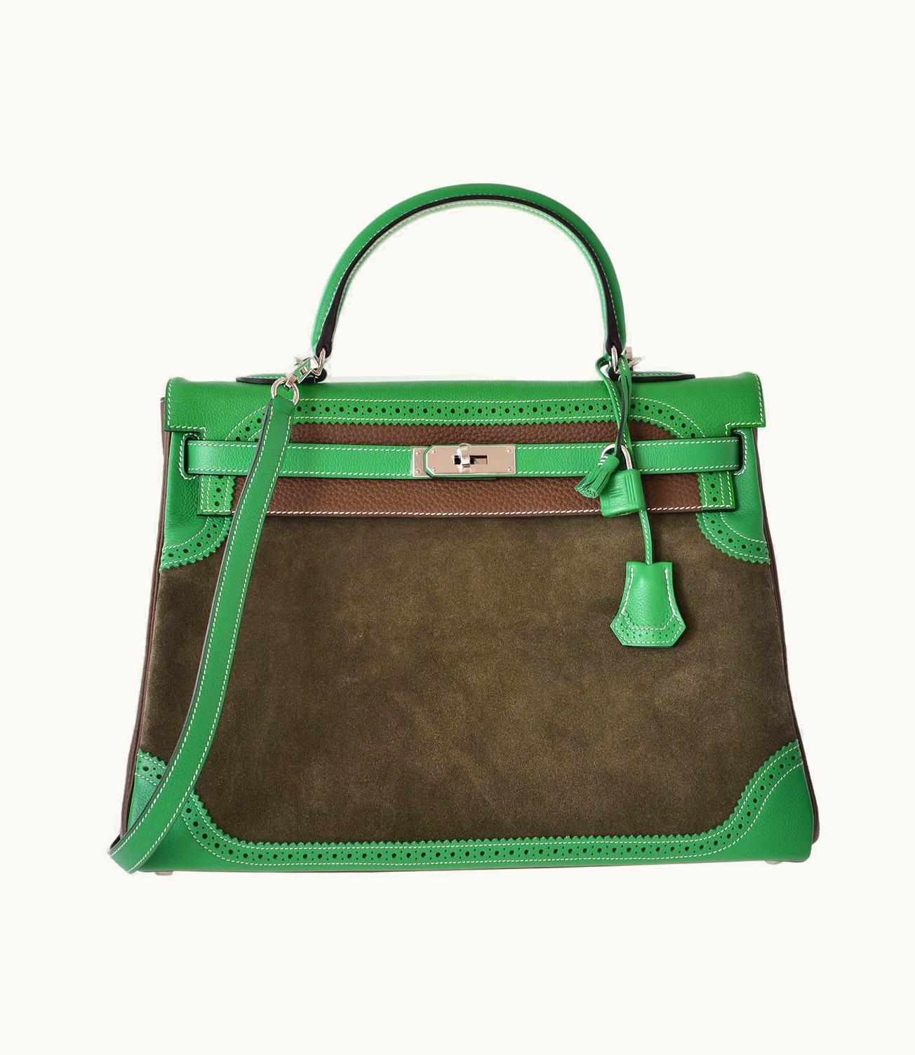 Hermès Kelly Grizzly - 35cm - Green - Ghillies - Gold (GHW) | GLINT