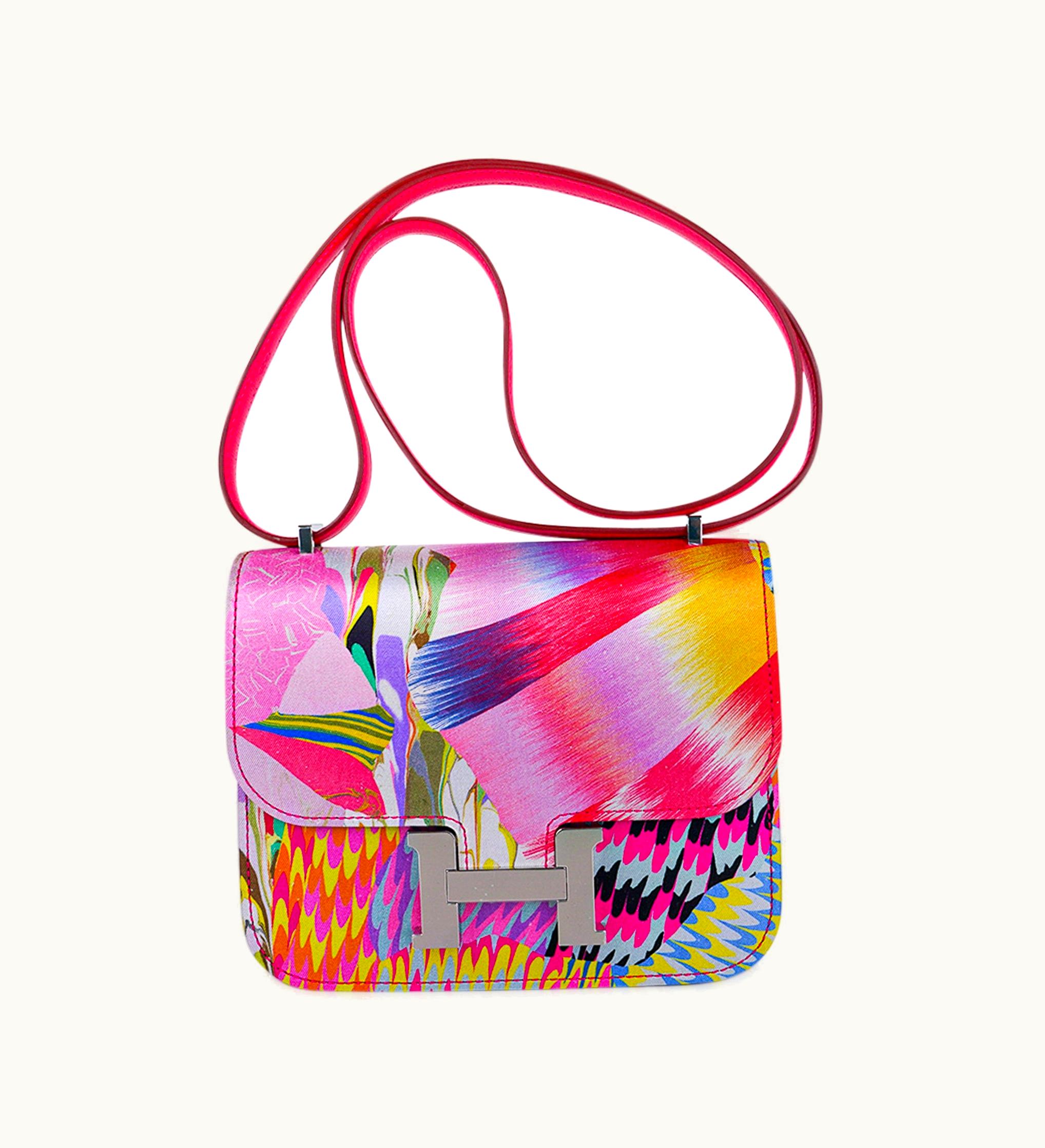 Hermès Limited Edition Mini Constance 18cm Bag Marble Silk - Red Silk - Palladium (PHW) | GLINT