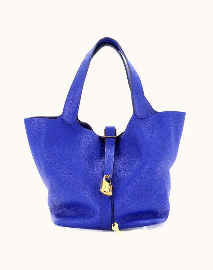 Hermès Picotin Lock Bag Clemence GM Leather Tote Blue Gold | GLINT