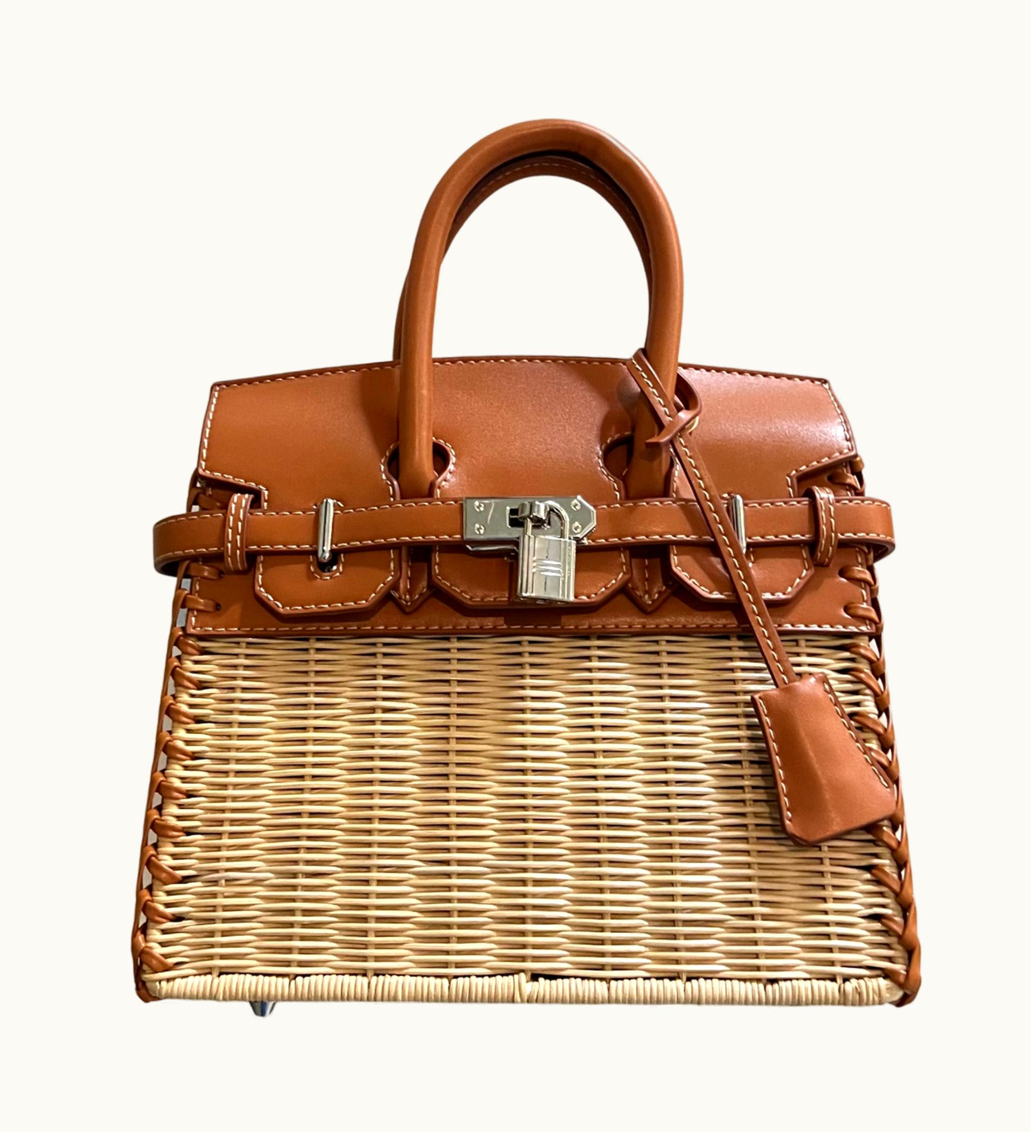 Hermès Straw & Leather Picnic Bag - Brown - Leather - Gold (GHW) | GLINT