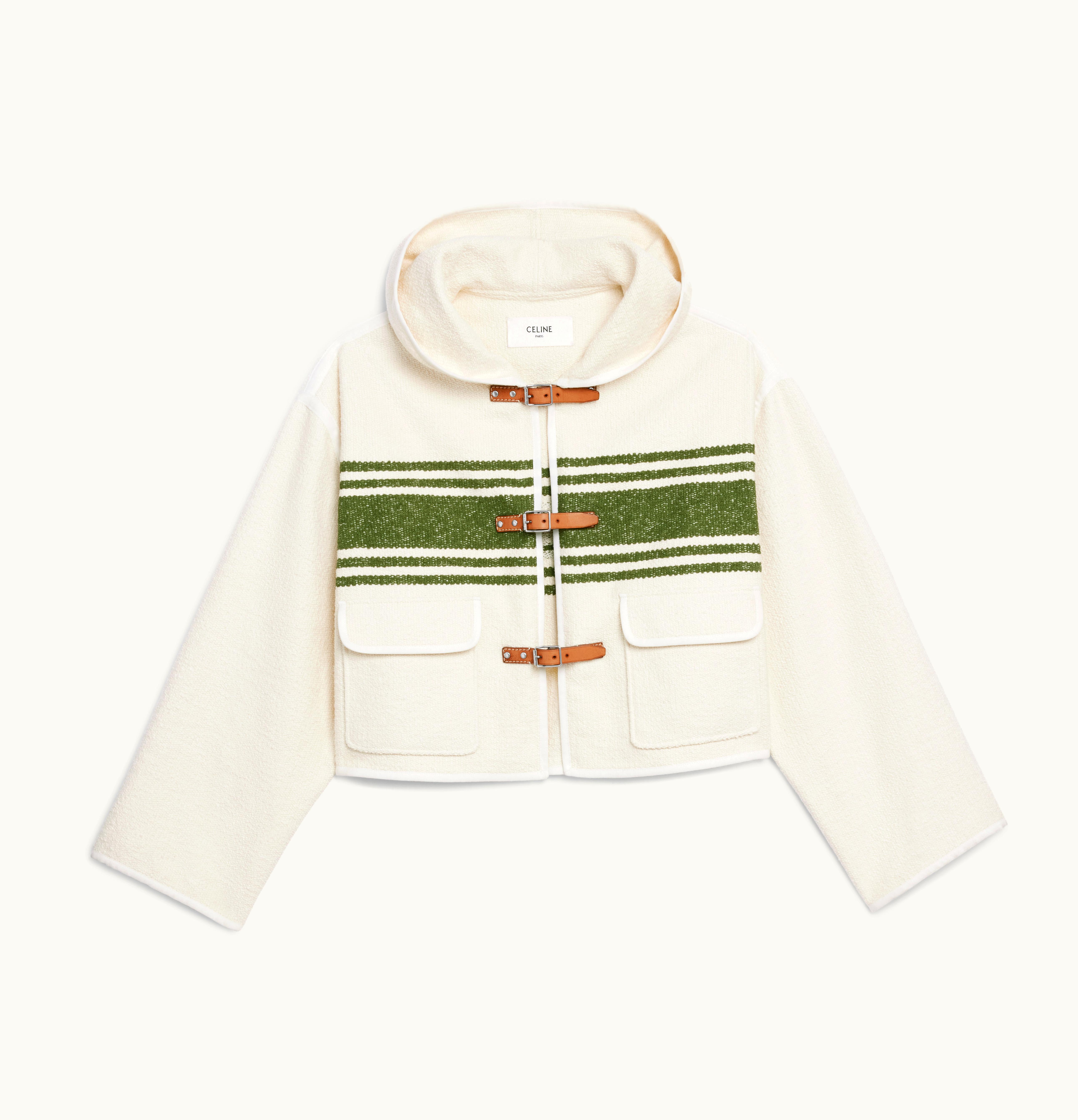 Celine Hooded Cardigan In Striped Tweed Grege/Olive | GLINT