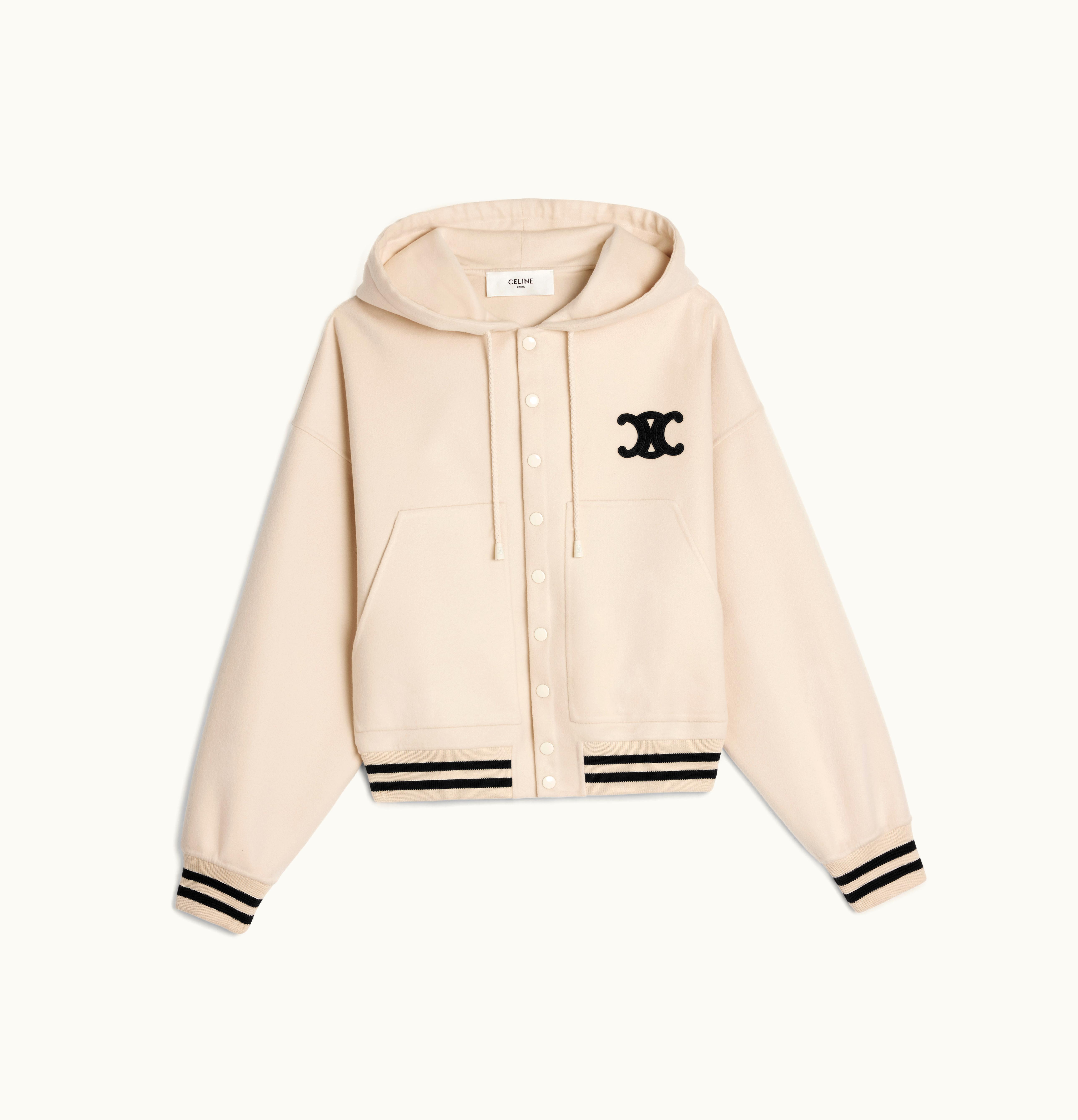 Celine Hooded Varsity Jacket In Double Face Cashmere Ivory | GLINT