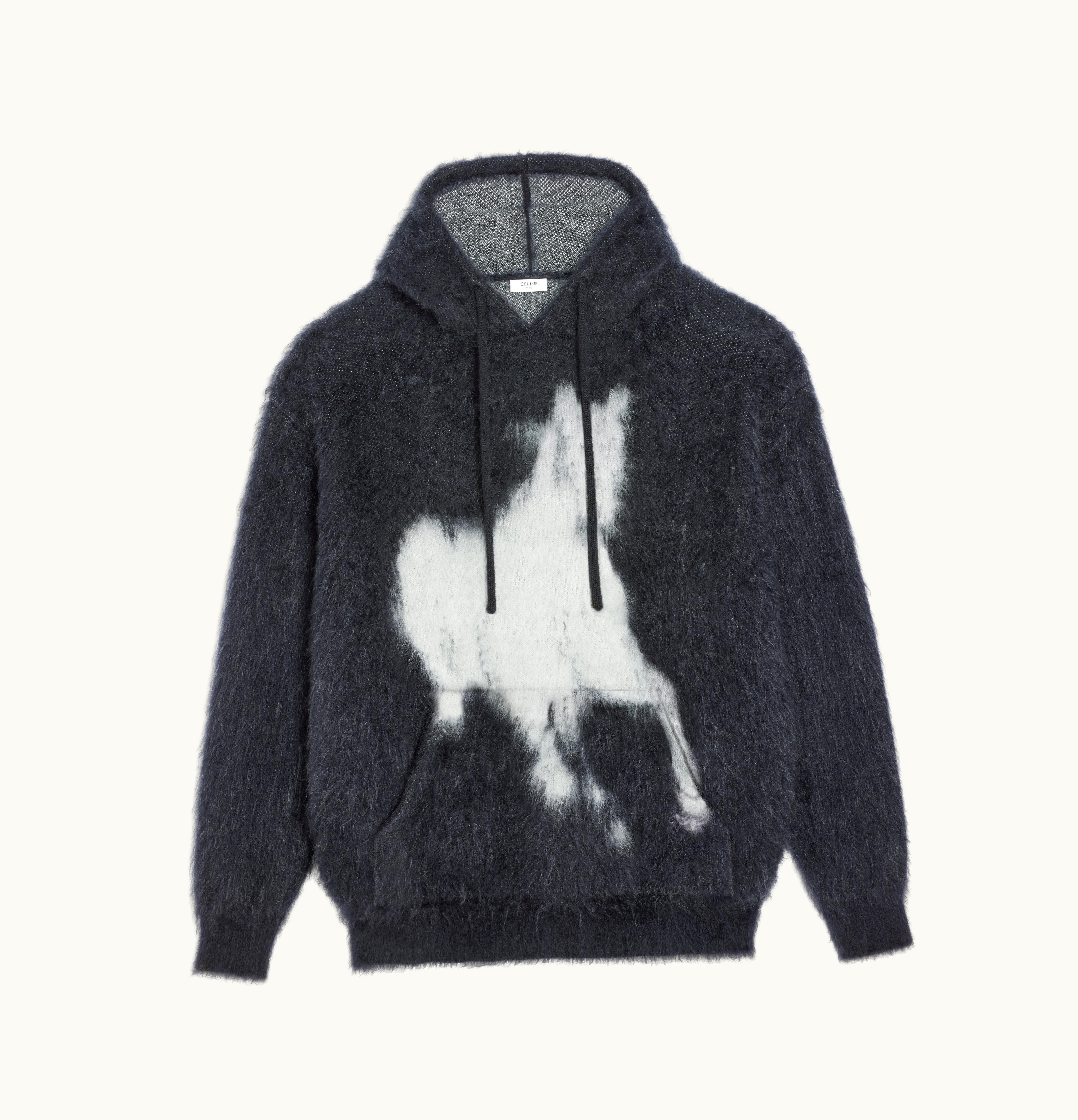 Celine Horse Hooded Sweater In Silk Mohair Black / Off White | GLINT