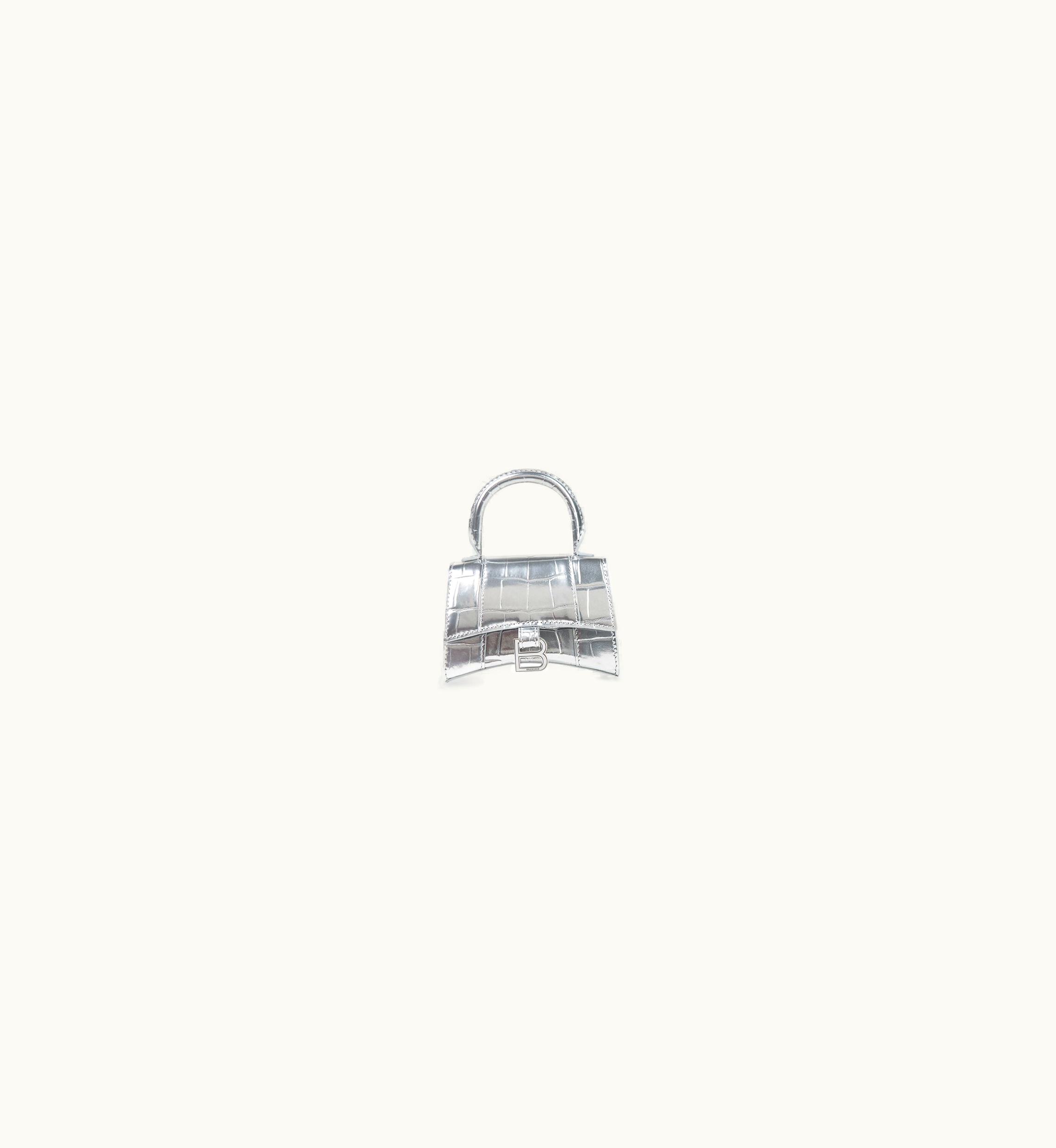 Balenciaga Hourglass Mini Handbag Metallized Crocodile Embossed | GLINT