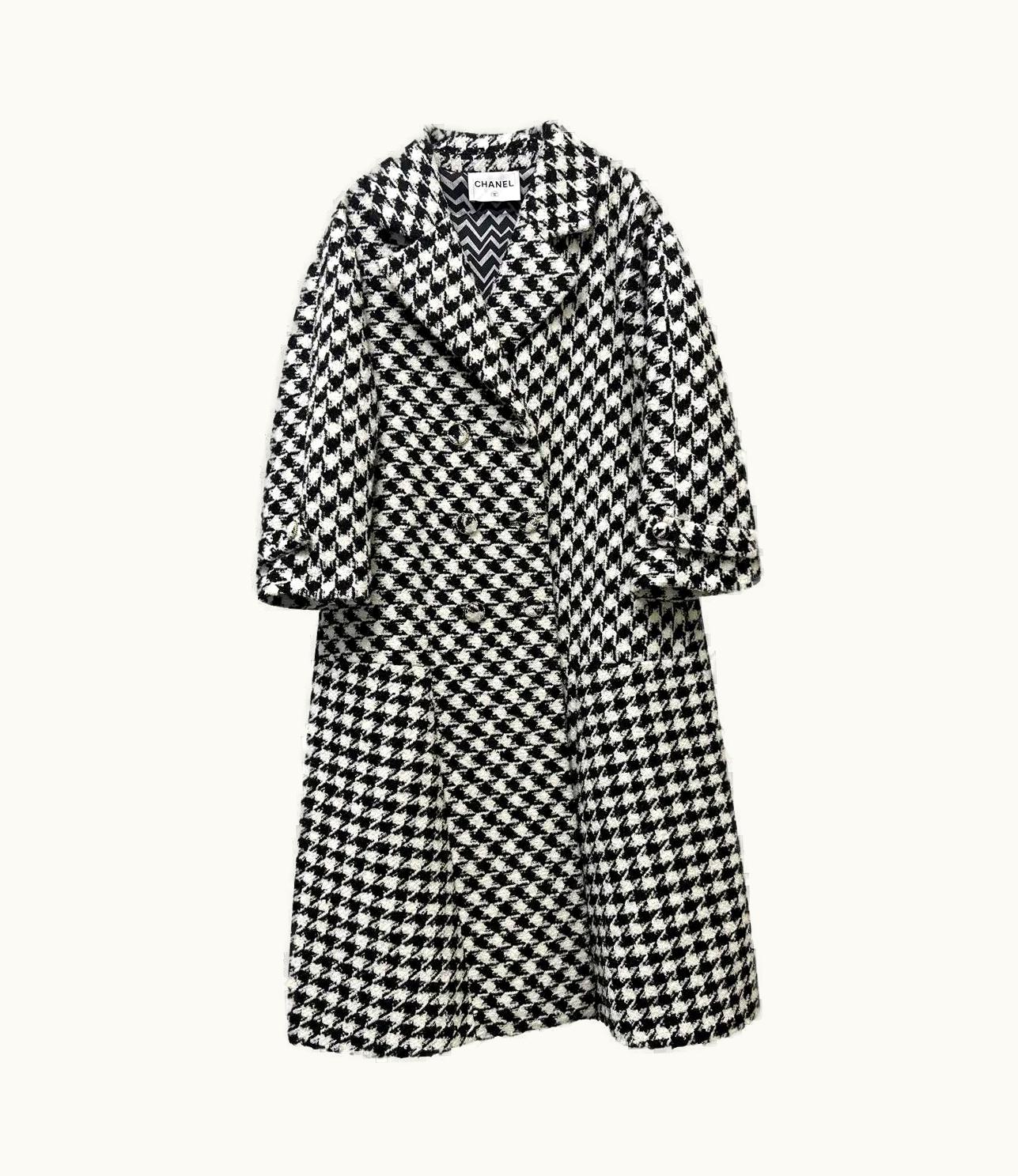 Iconic Chanel Houndstooth Print Wool Coat | GLINT