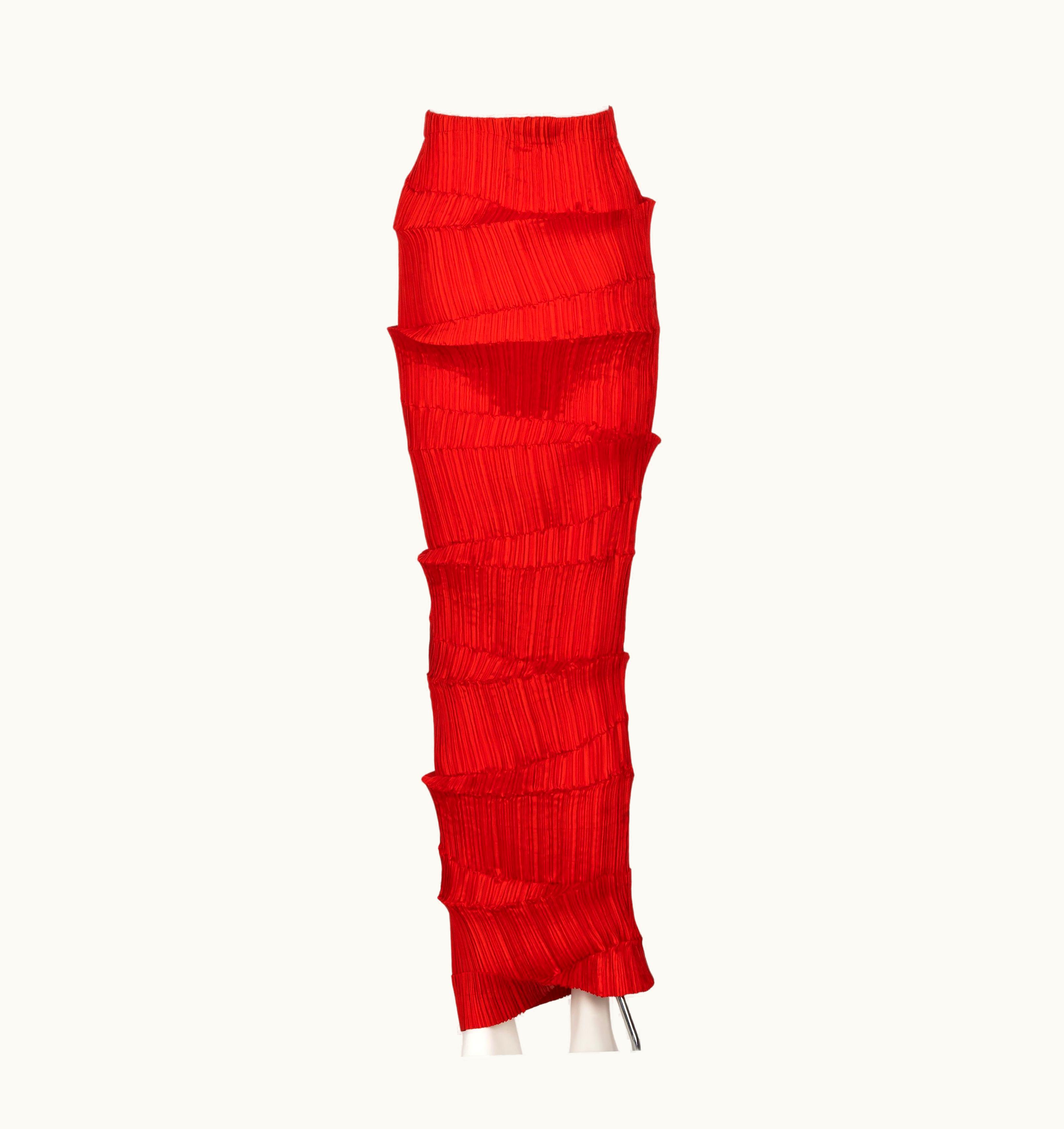 Issey Miyake Pleated Red Maxi Skirt 1990s | GLINT