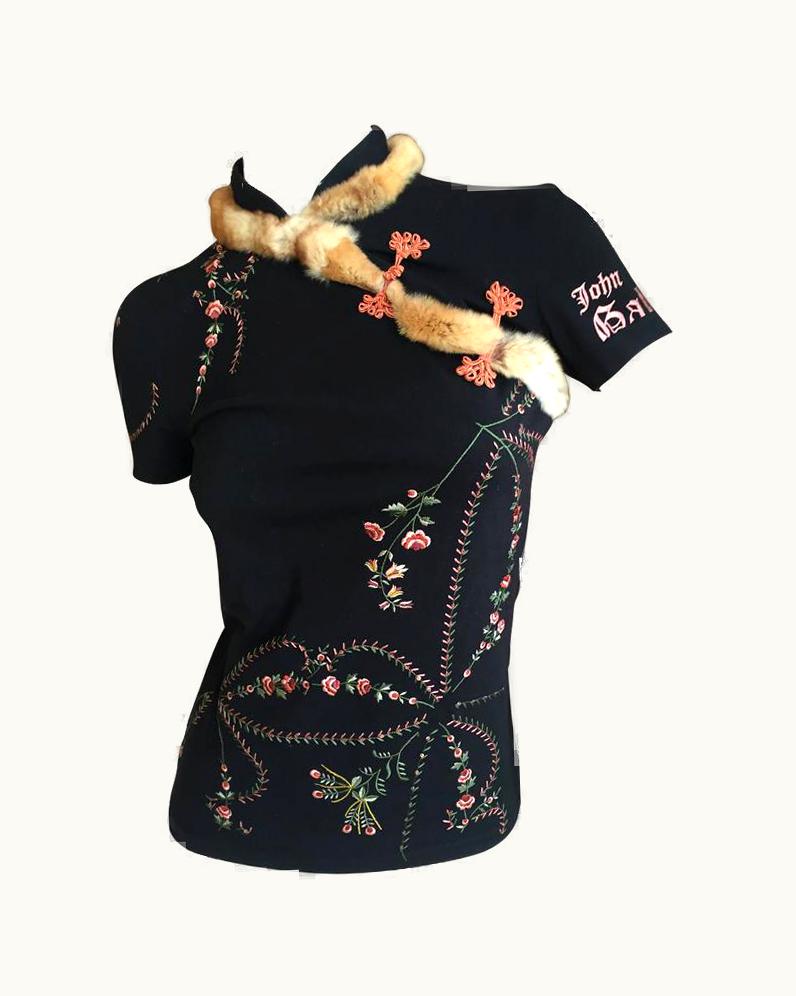 John Galliano Fur Trim Cheosam Top | GLINT