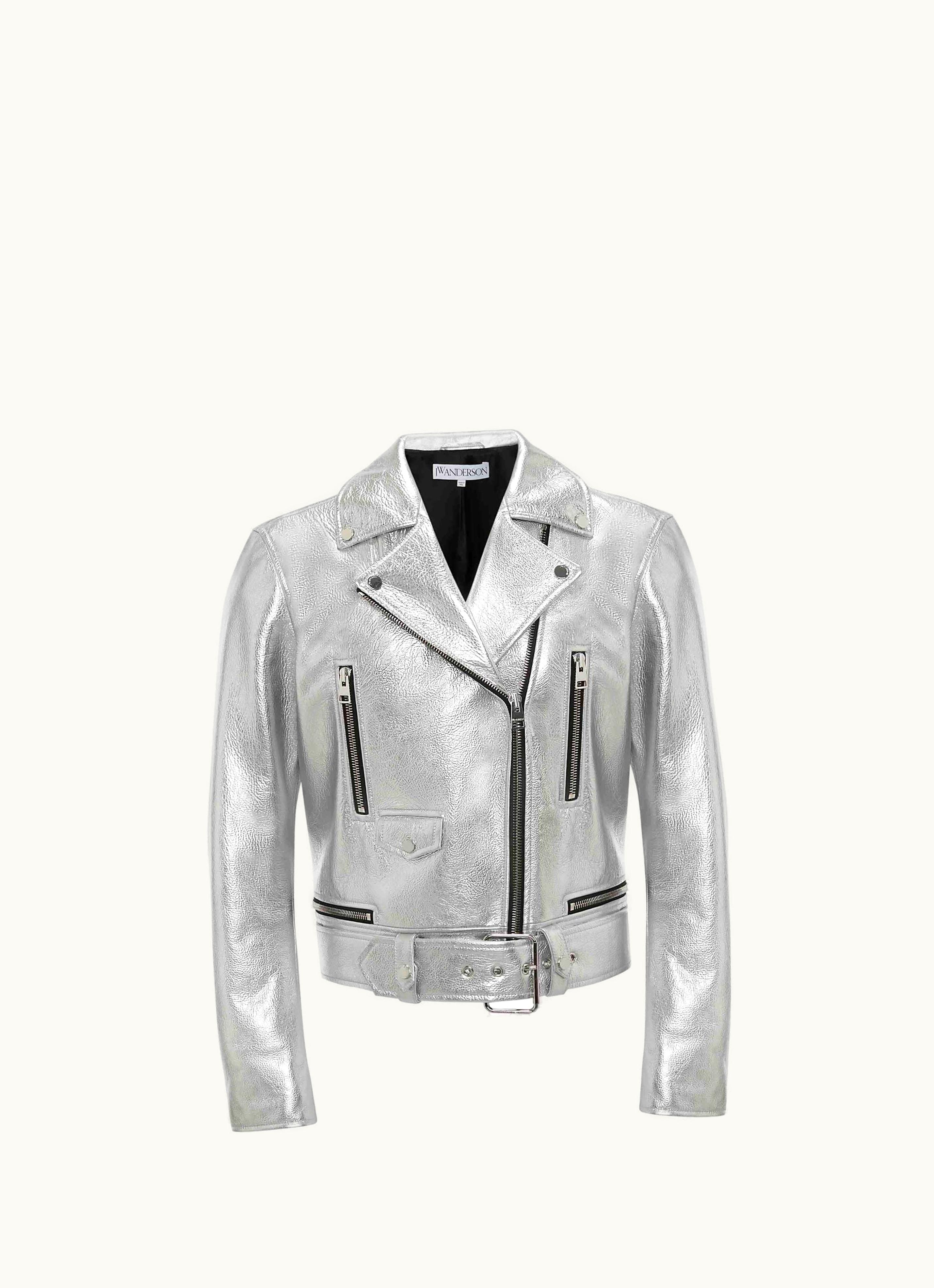JW Anderson Biker Leather Jacket In Silver | GLINT