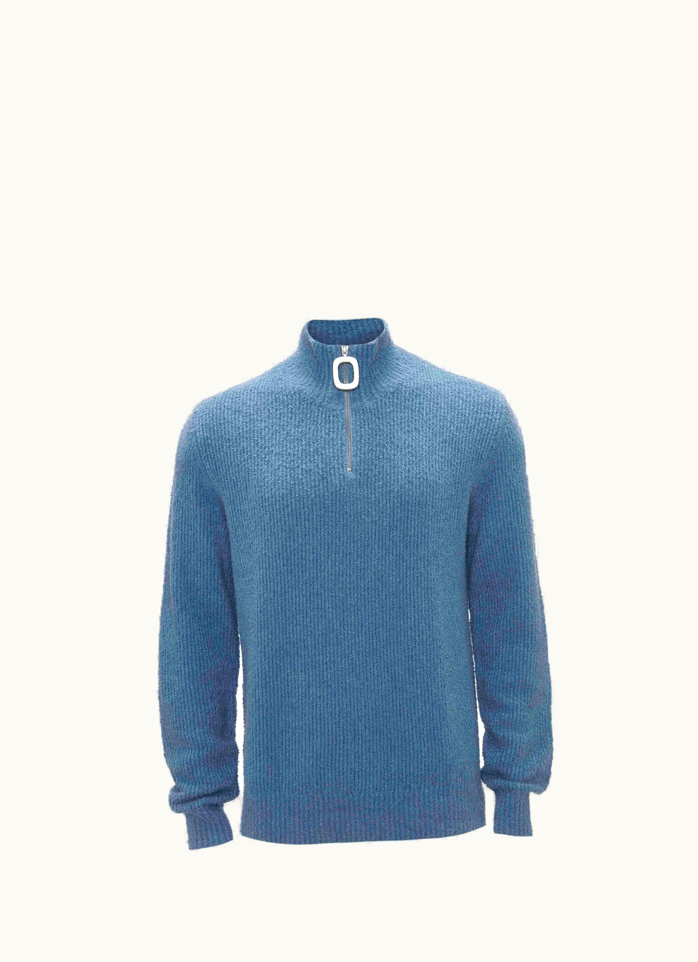 JW Anderson Boucle Henley Jumper In Blue | GLINT