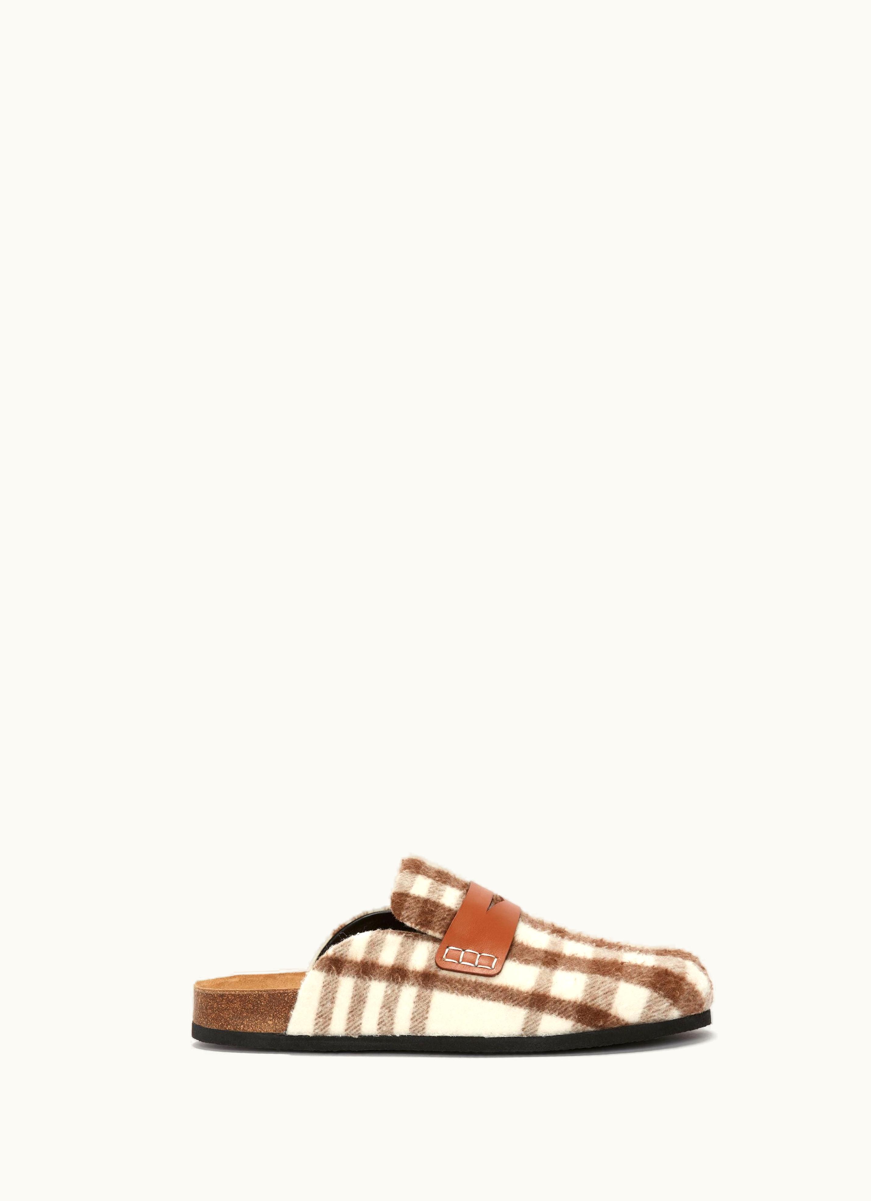 JW Anderson Check Loafer Mules In Brown | GLINT