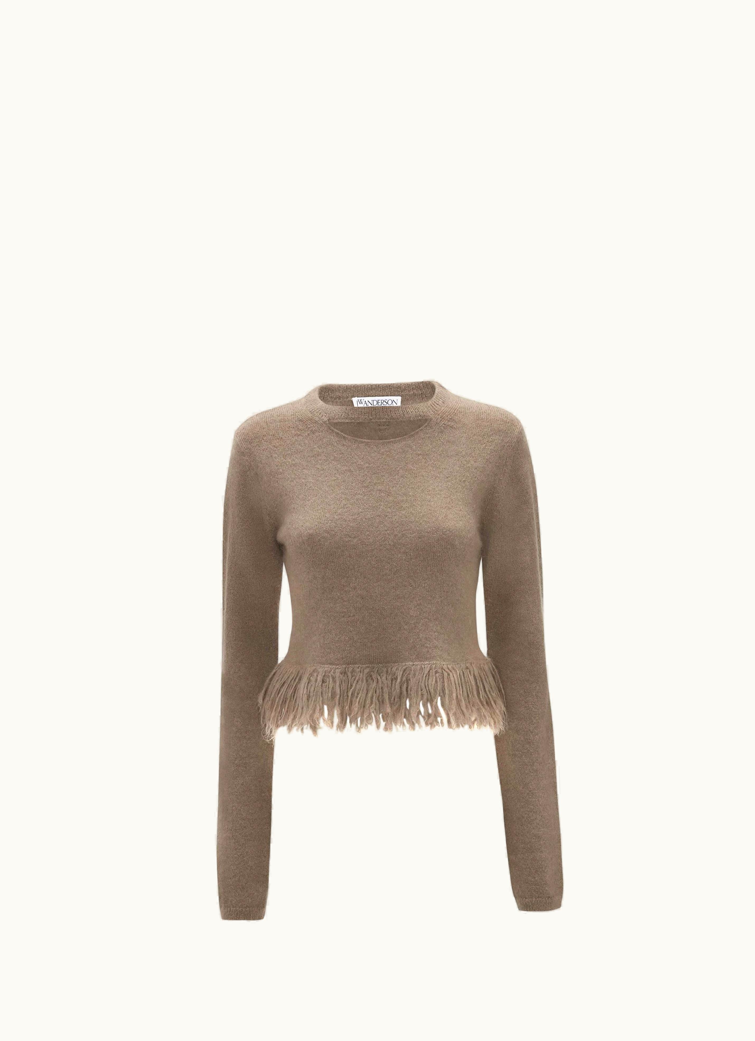 JW Anderson FRINGED-HEM Cropped Jumper In Brown | GLINT