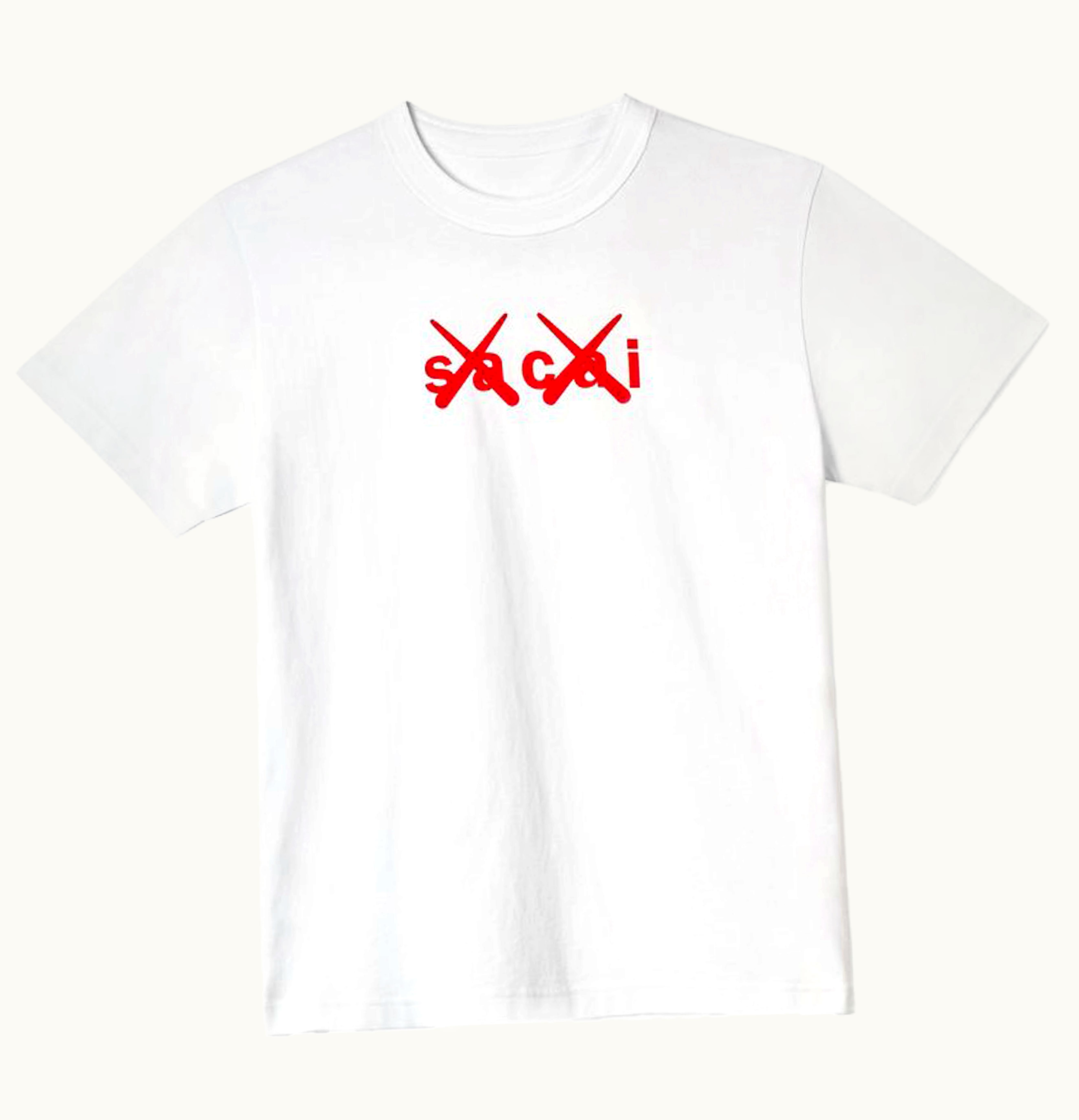 KAWS x Sacai Flock Print T shirt White Red | GLINT