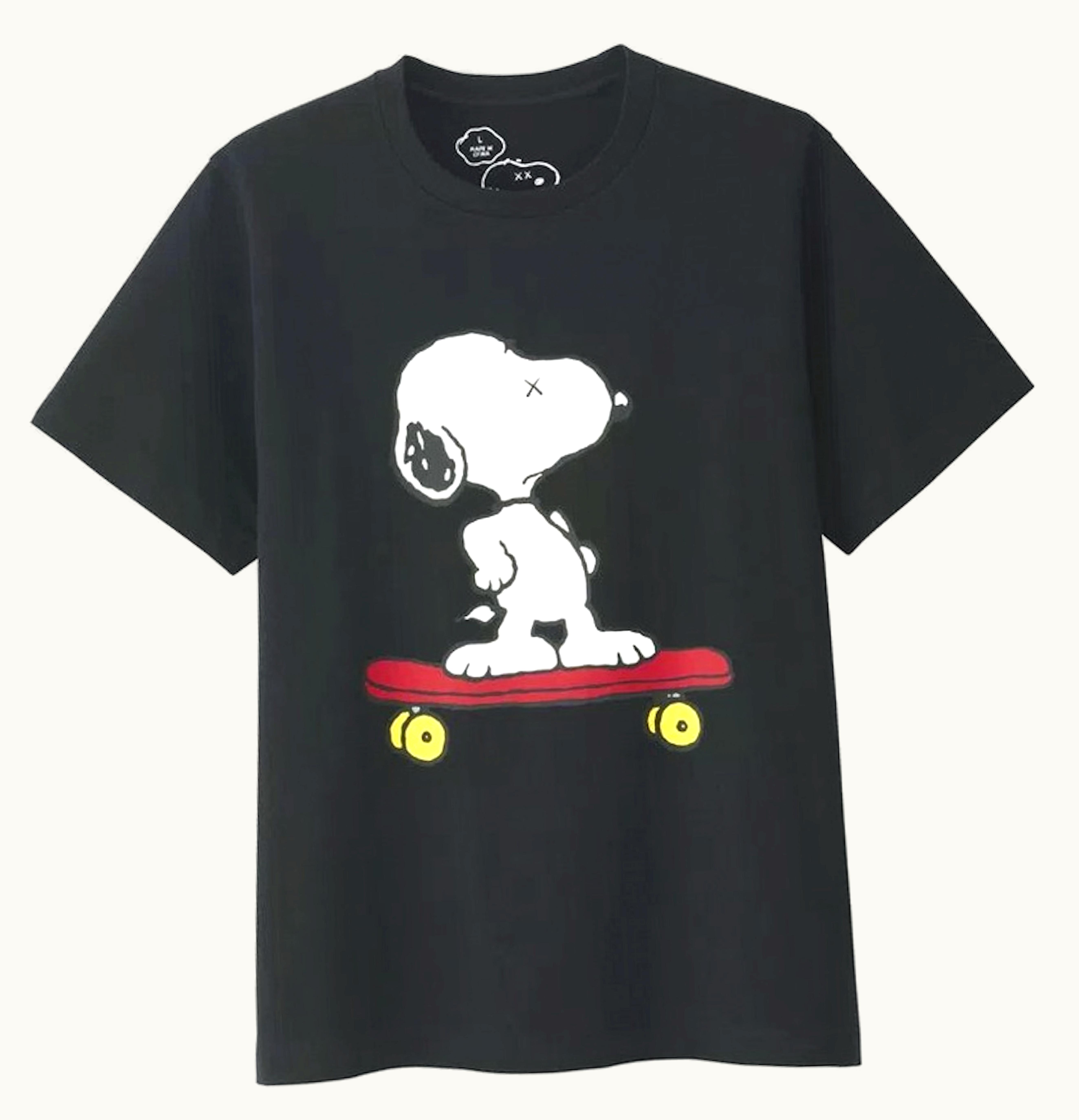 KAWS x Uniqlo x Peanuts Snoopy Skateboarding Tee US Sizing Black | GLINT