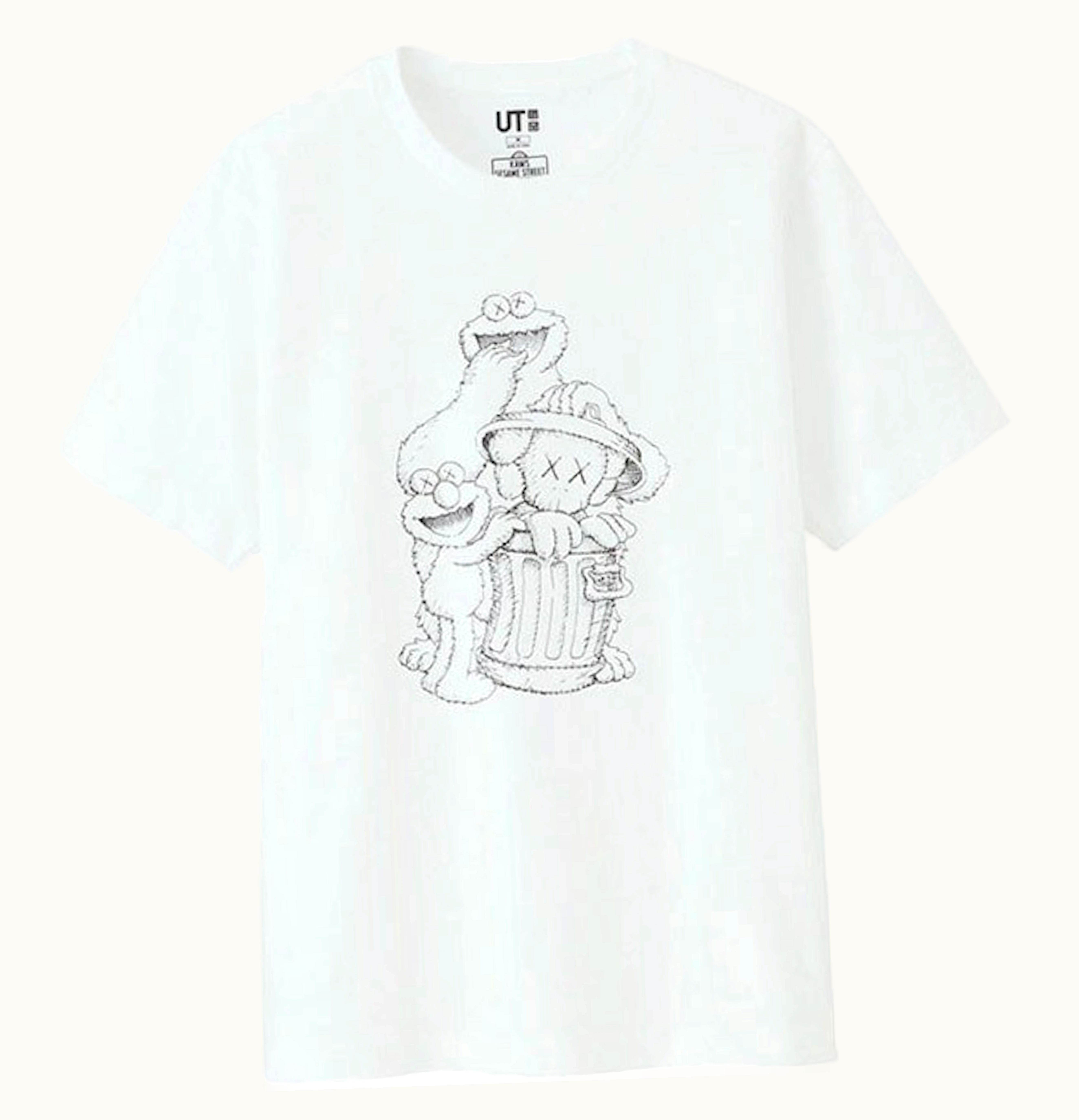 KAWS x Uniqlo x Sesame Street Companion Trash Can Outline Tee US Sizing White | GLINT