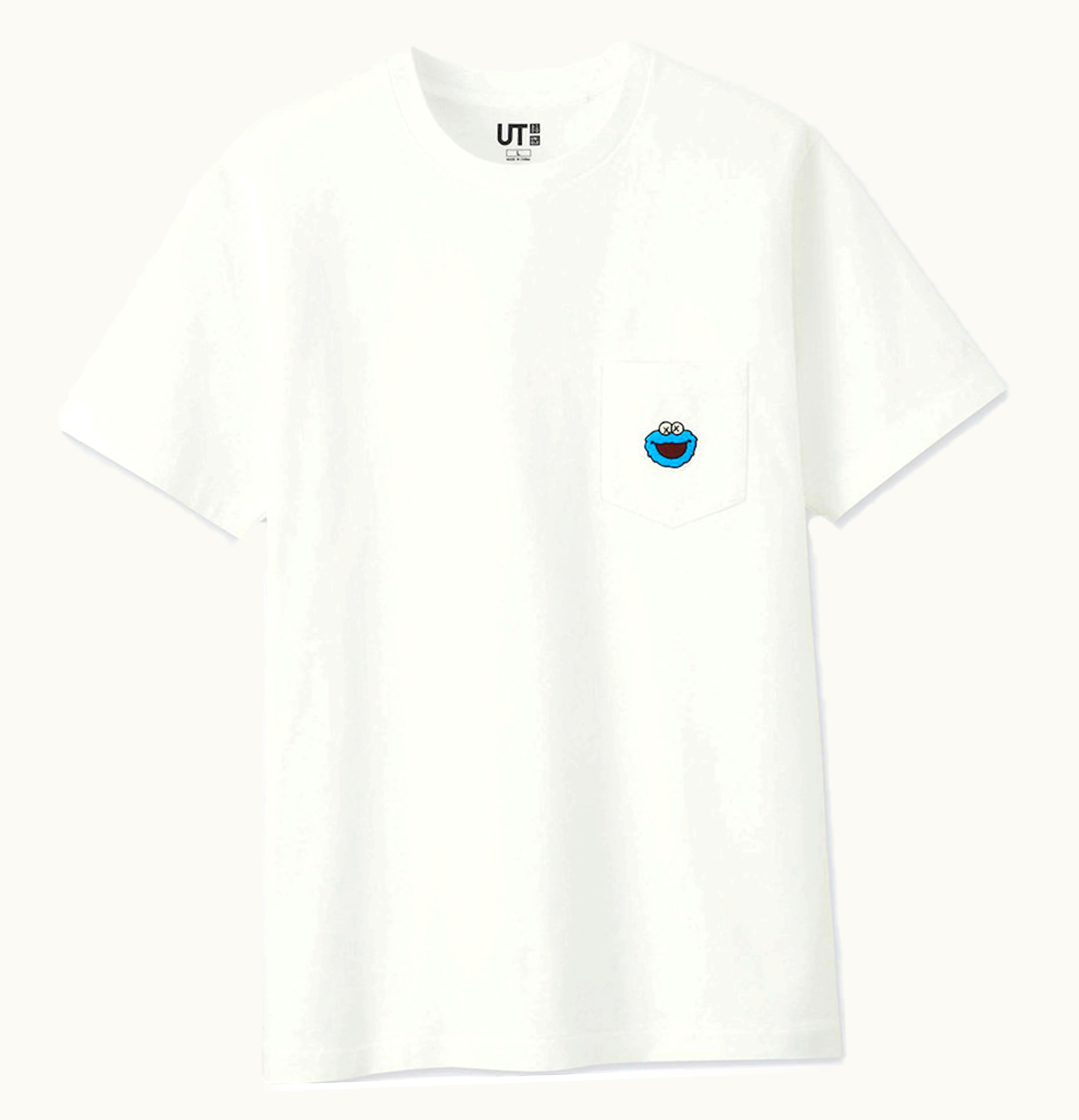 KAWS x Uniqlo x Sesame Street Cookie Monster Pocket Tee US Sizing White | GLINT