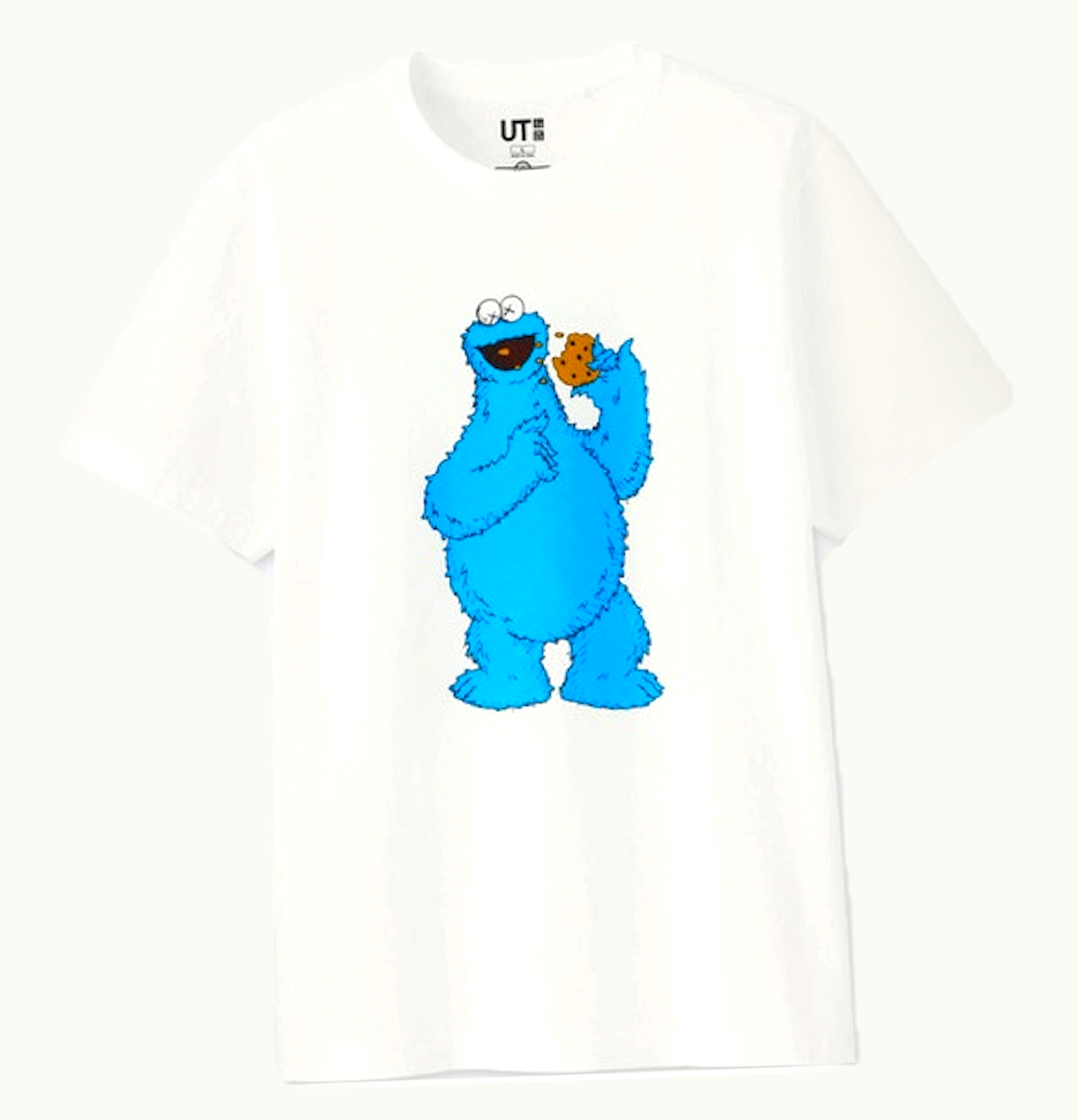 KAWS x Uniqlo x Sesame Street Cookie Monster Tee Japanese Sizing White | GLINT