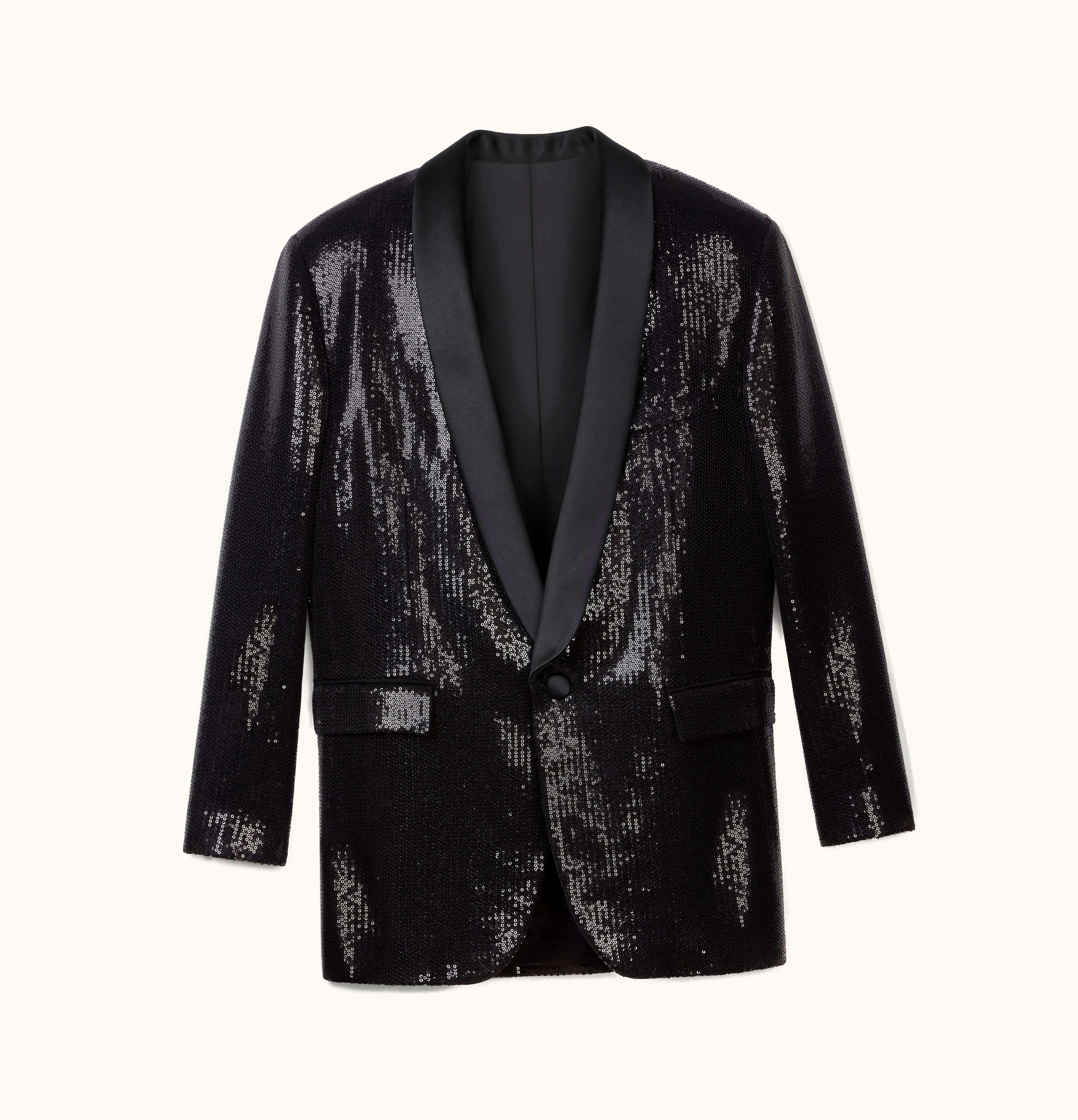 Celine Kim Tux Jacket In Micro Sequin Sable Black | GLINT