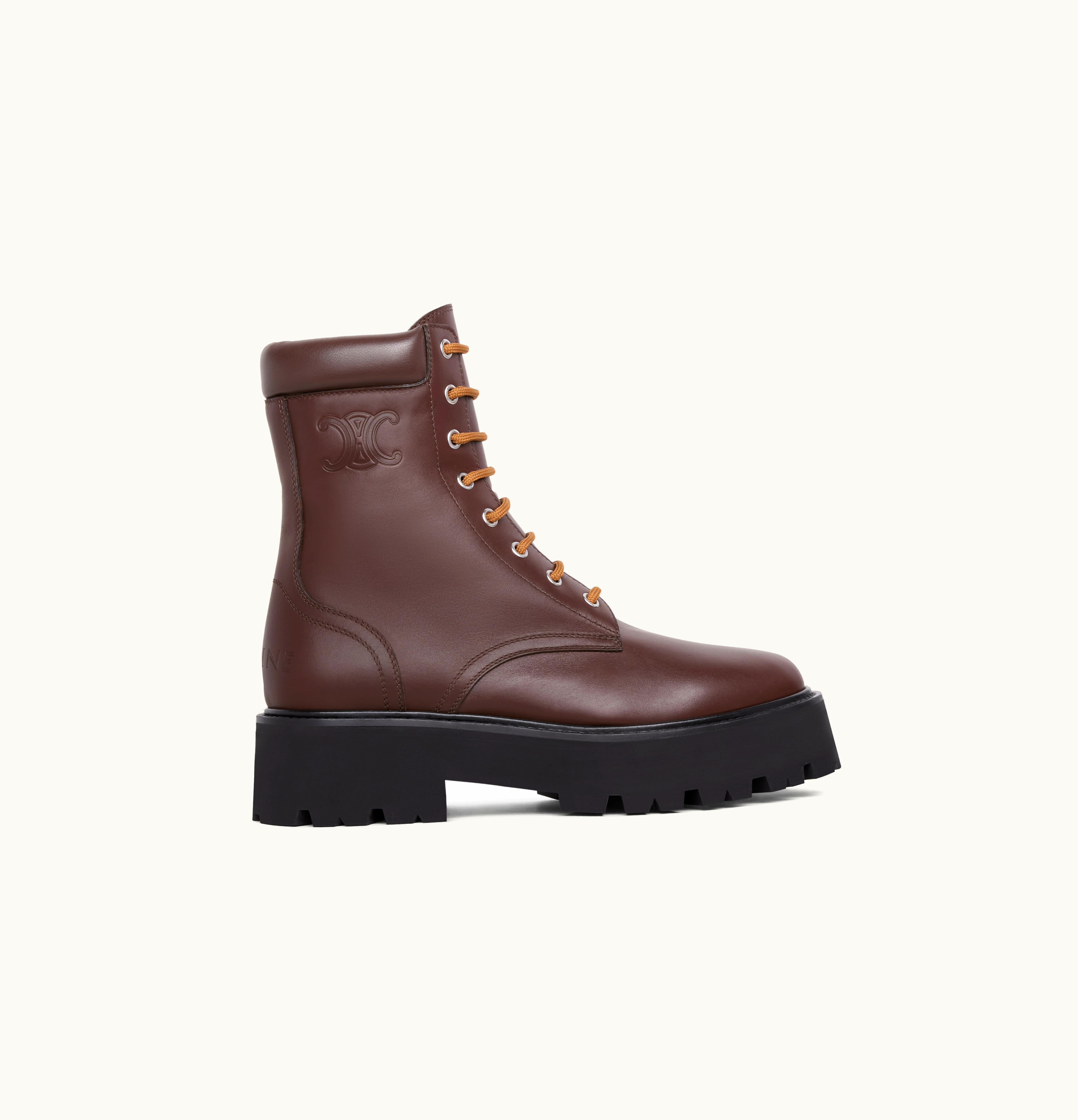 Celine Lace-Up Boot With Triomphe Celine Bulky In Shiny Calfskin Ebony | GLINT