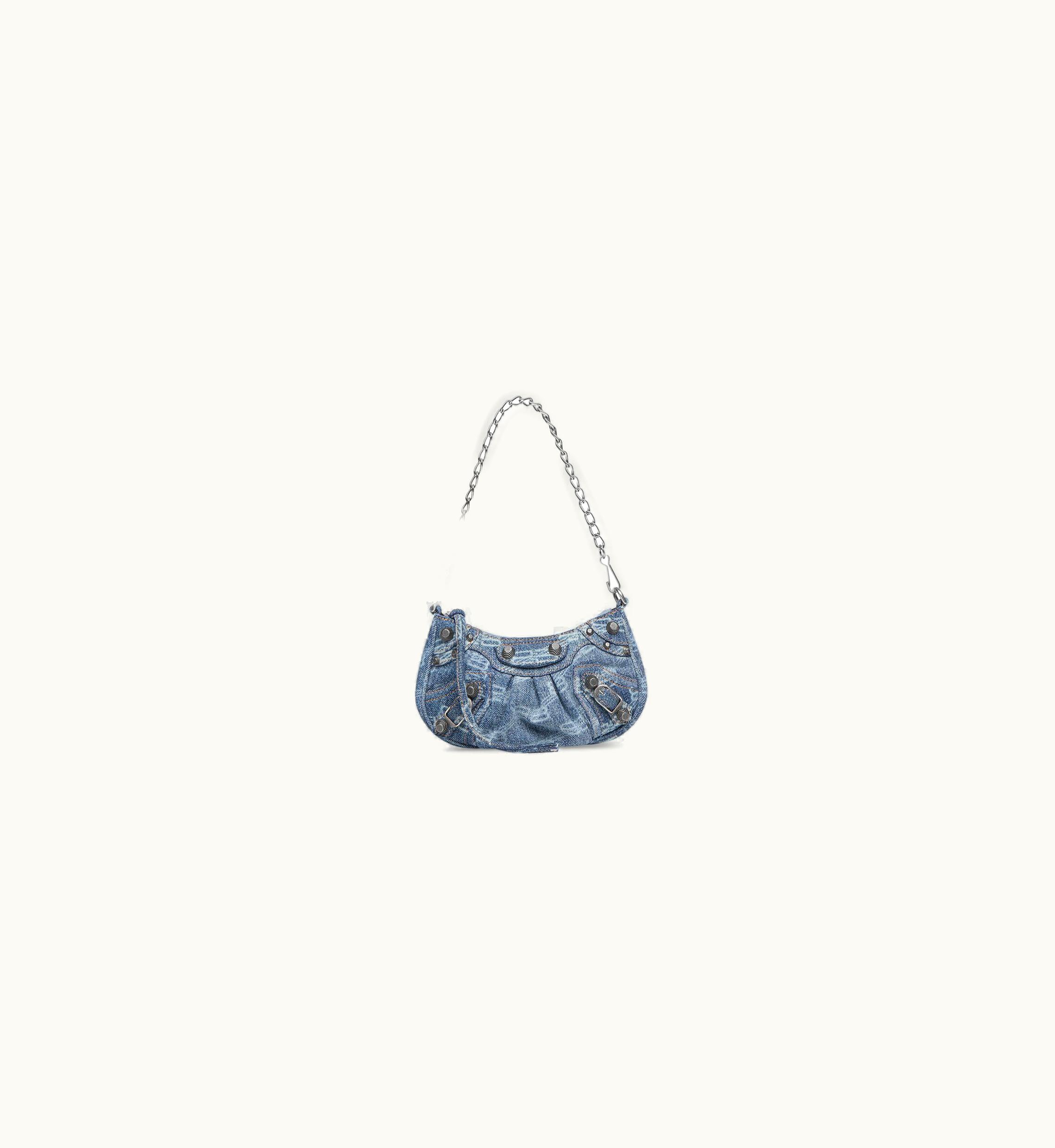 Balenciaga Le Cagole Mini Bag With Chain Bb Monogram Bleached Denim | GLINT