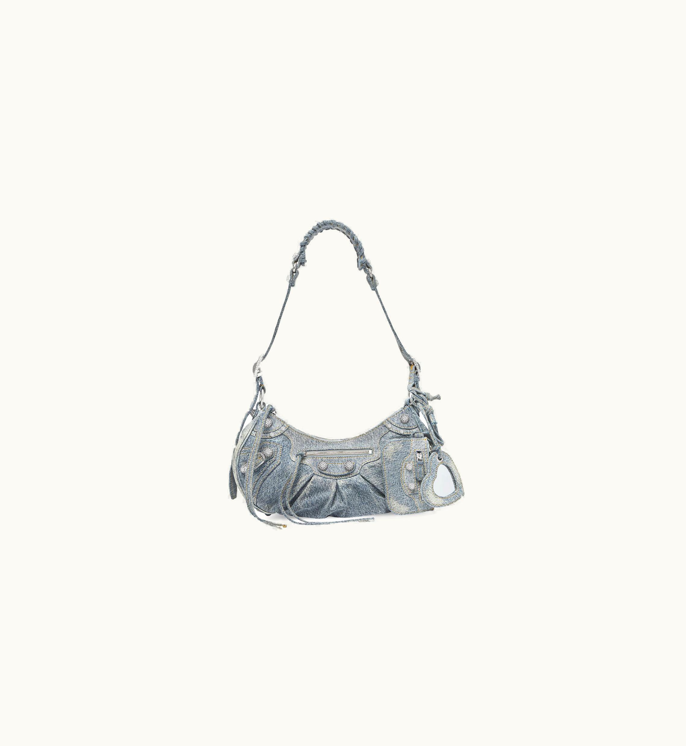 Balenciaga Le Cagole Small Shoulder Bag In Denim With Rhinestones | GLINT