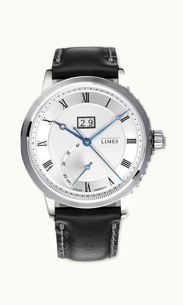 Limes Pharo BigDate - Silvered / black leather strap U6282C-LA4.3 | GLINT