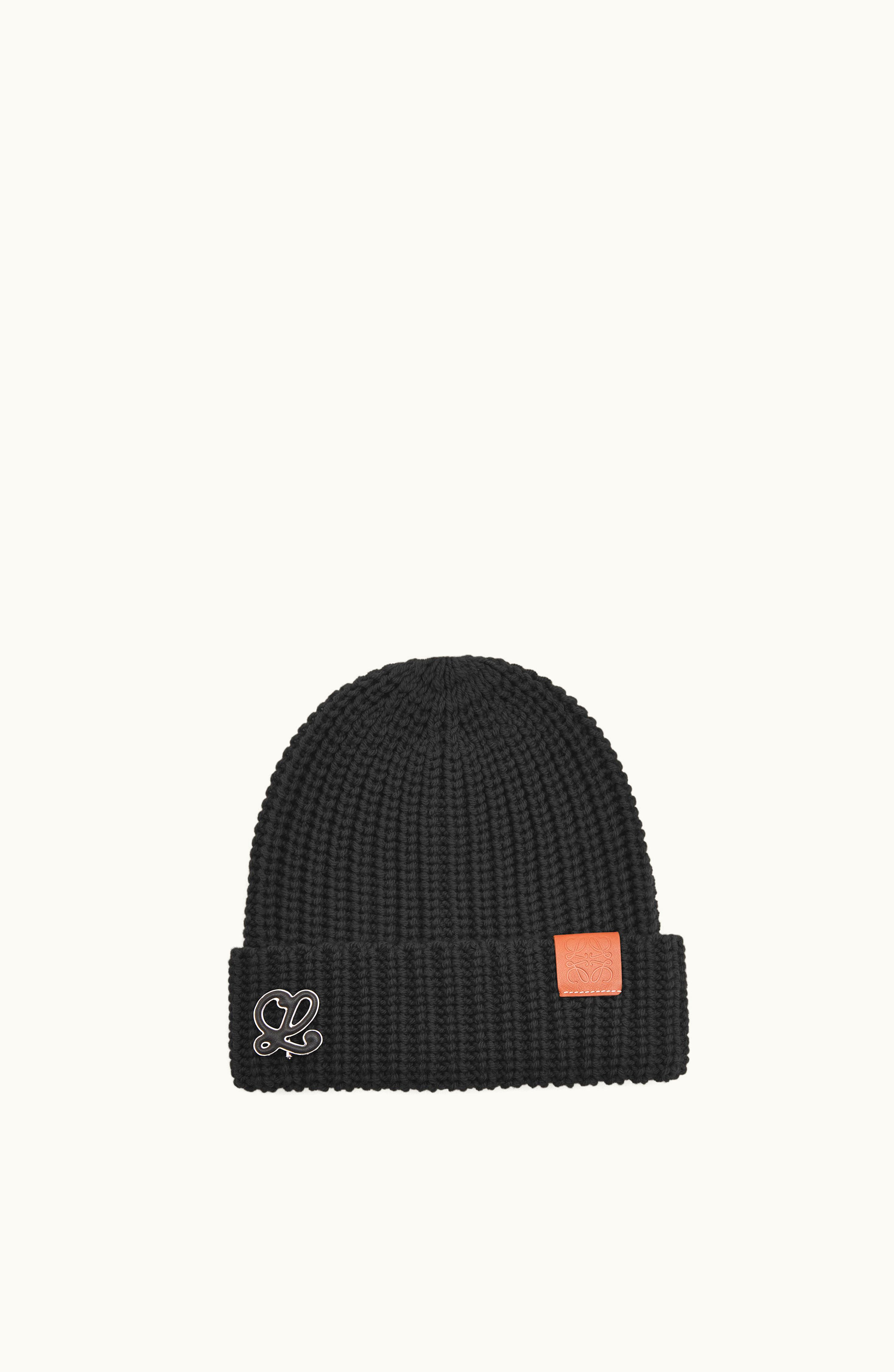 Loewe Anagram Brooch Beanie In Wool Black | GLINT