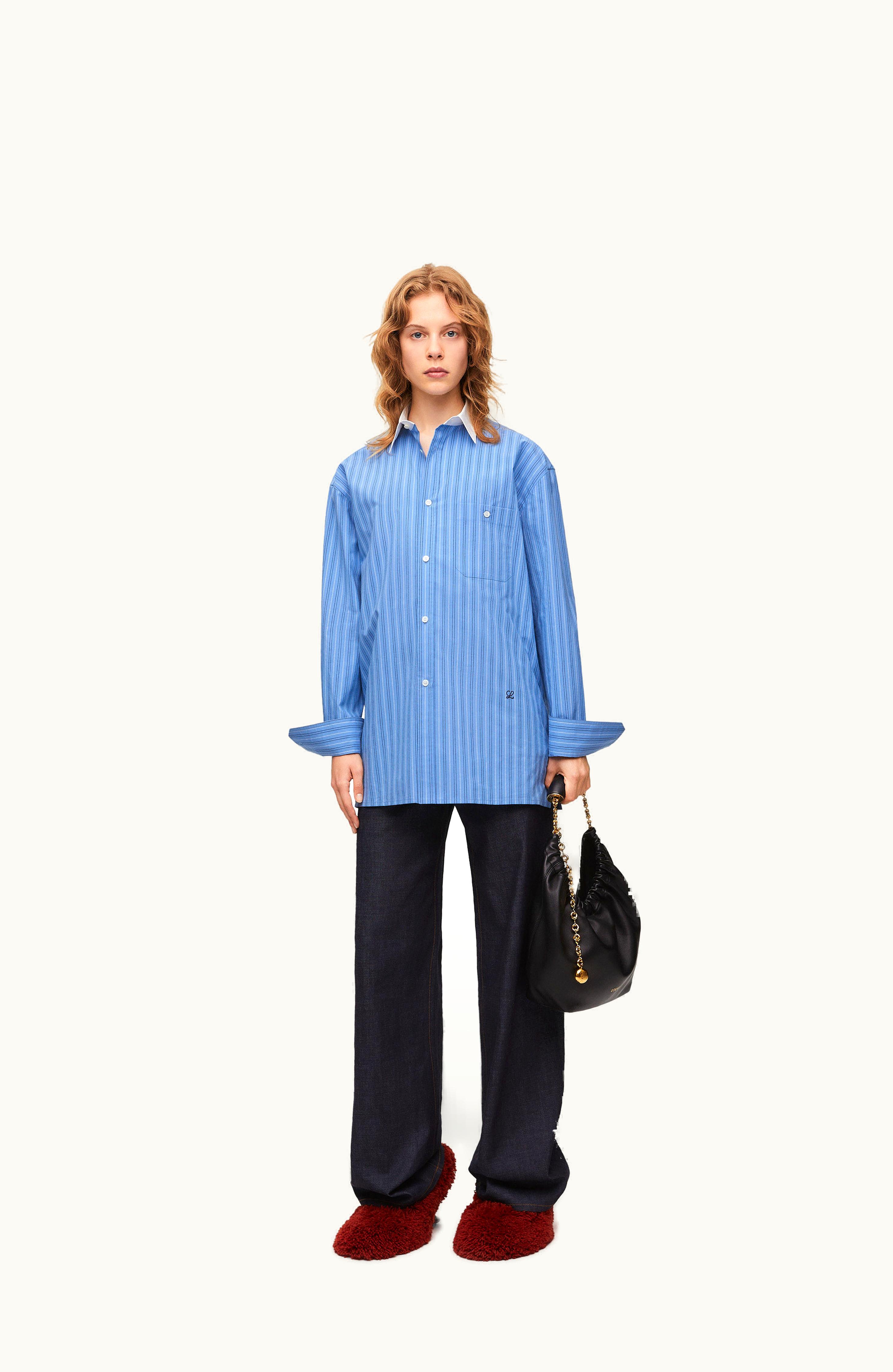 Loewe Anagram Embroidered Cotton Poplin Shirt Stone Blue | GLINT
