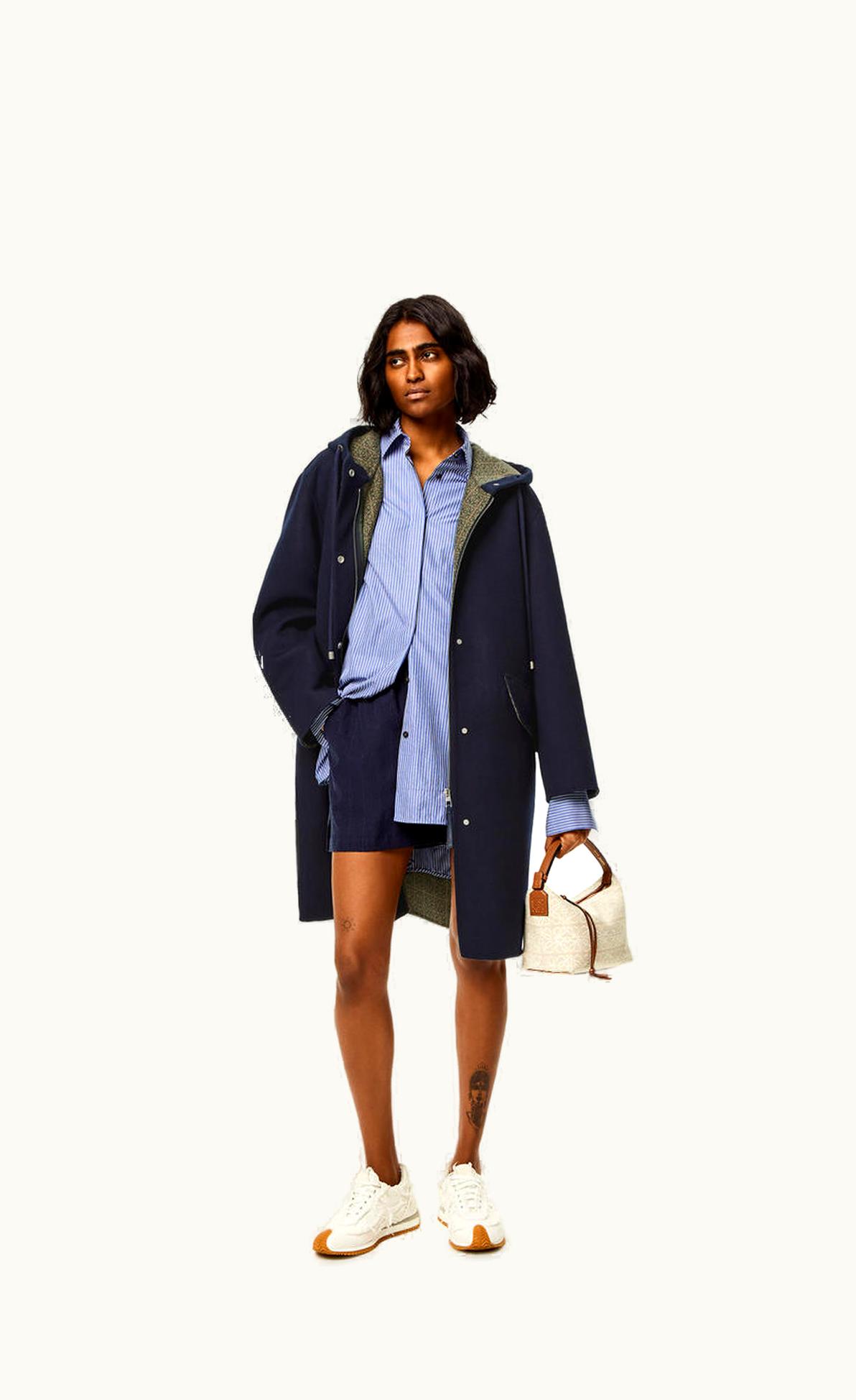 Loewe Anagram Jacquard Hooded Coat In Wool | GLINT