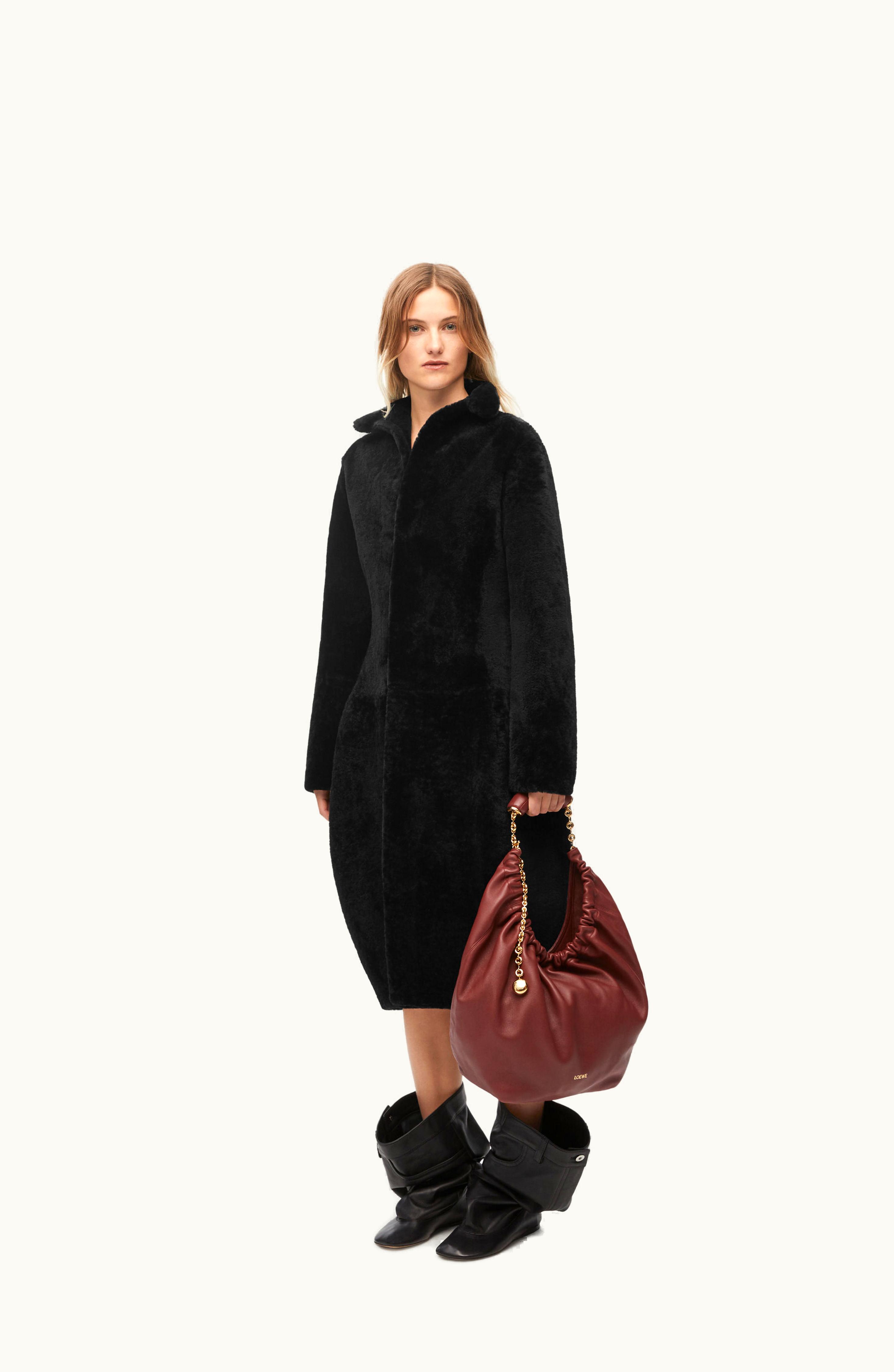 Loewe Balloon Coat In Shearling Black | GLINT