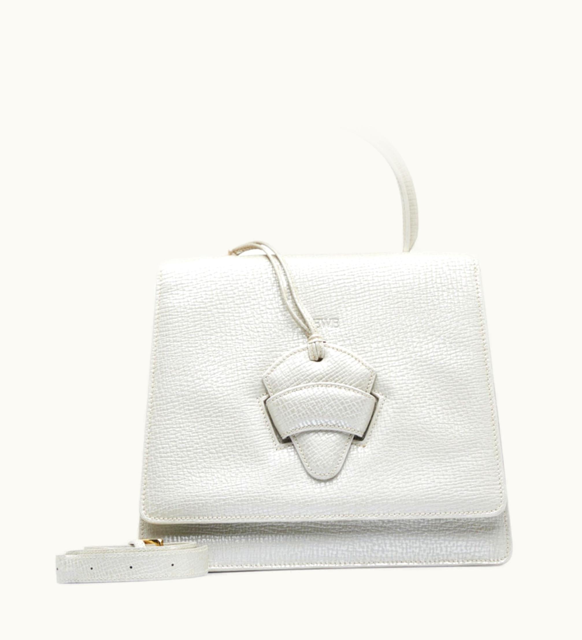 Loewe Barcelona Handbag White Leather Ladies | GLINT