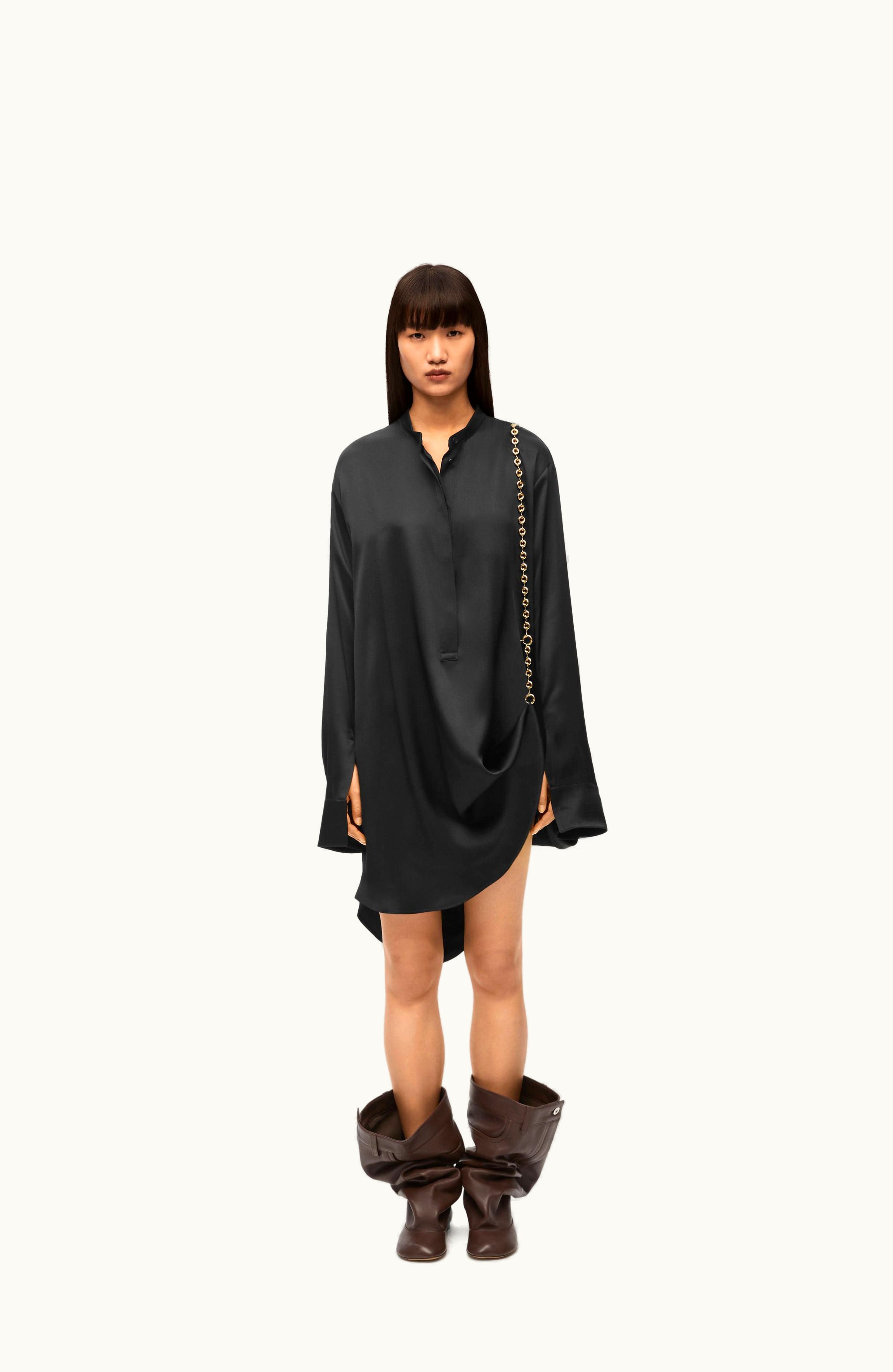 Loewe Chain Shirt Dress In Silk Black Luxe Edition | GLINT