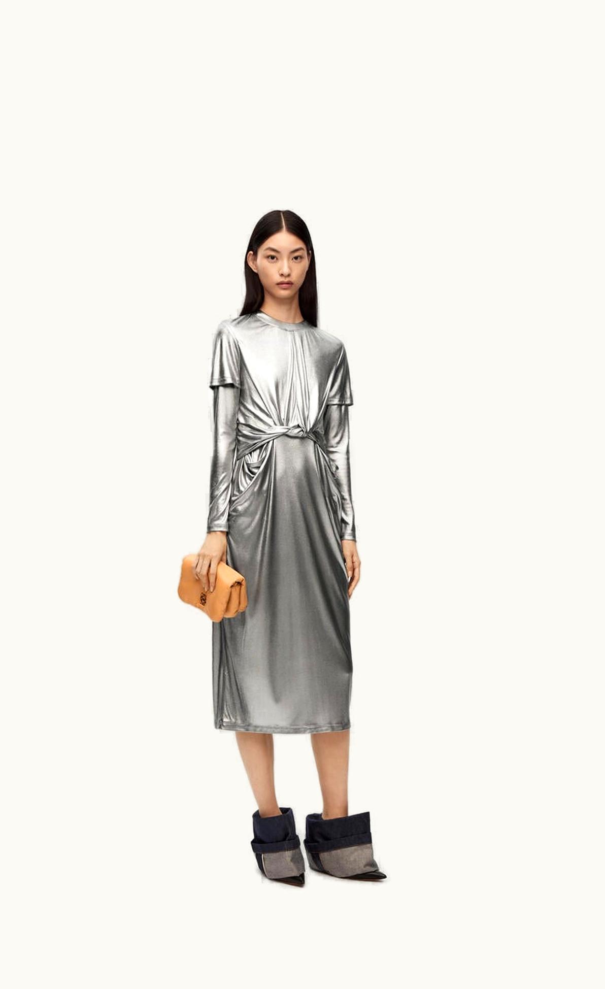 Loewe Draped Dress In Laminated Jersey | GLINT