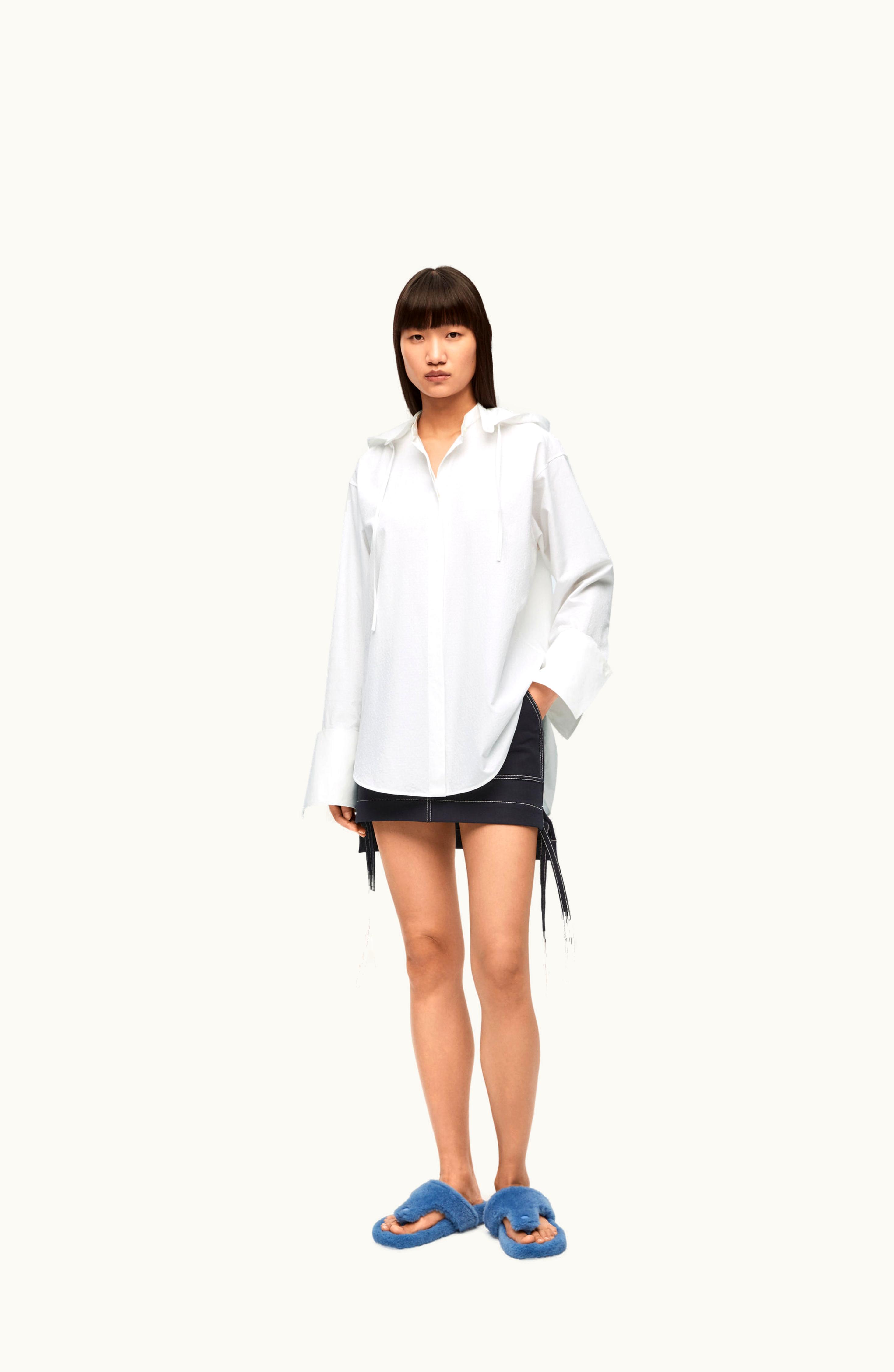 Loewe Hooded Shirt In Cotton White | GLINT