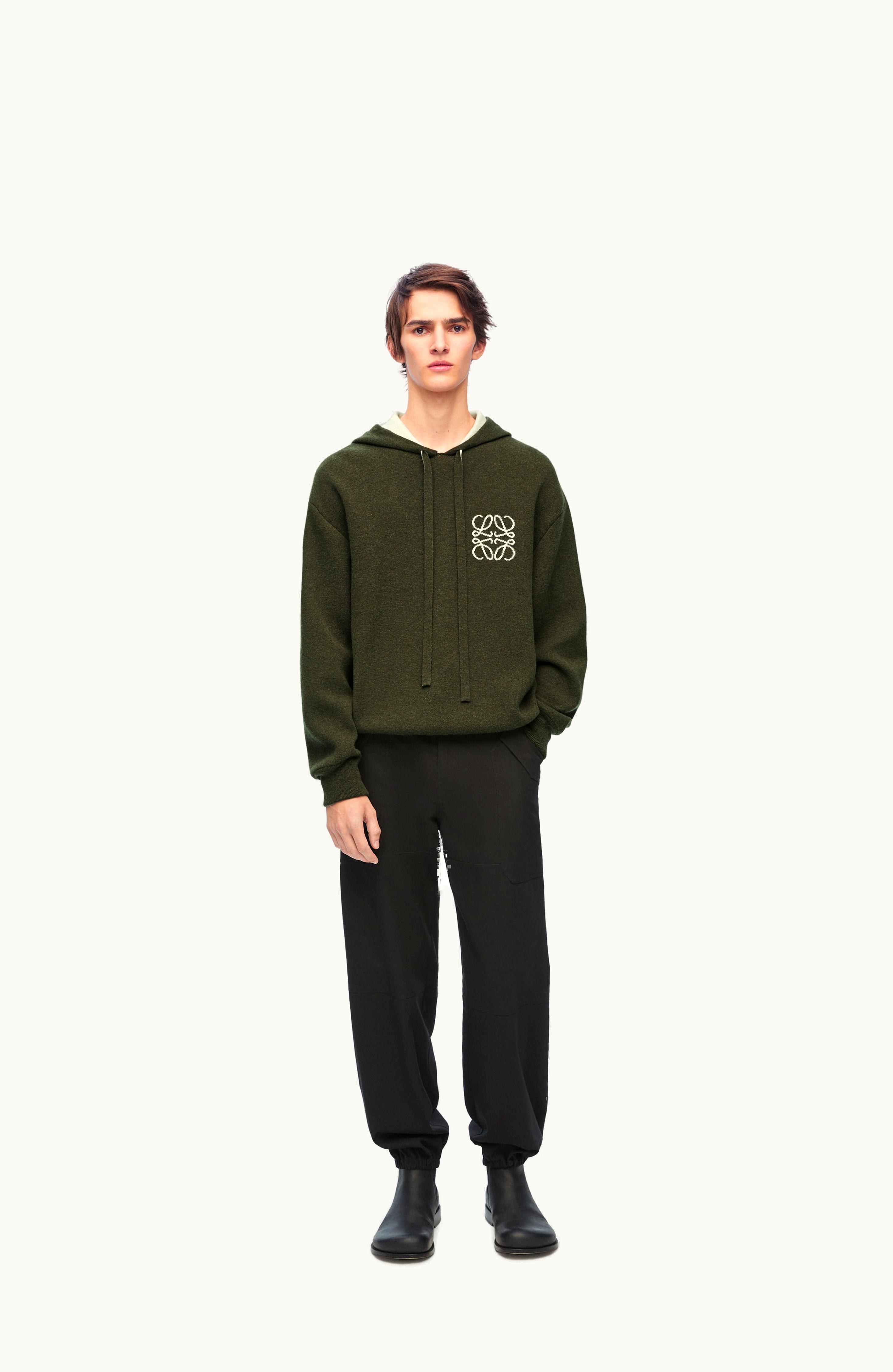 Loewe Hoodie In Wool Khaki / White | GLINT