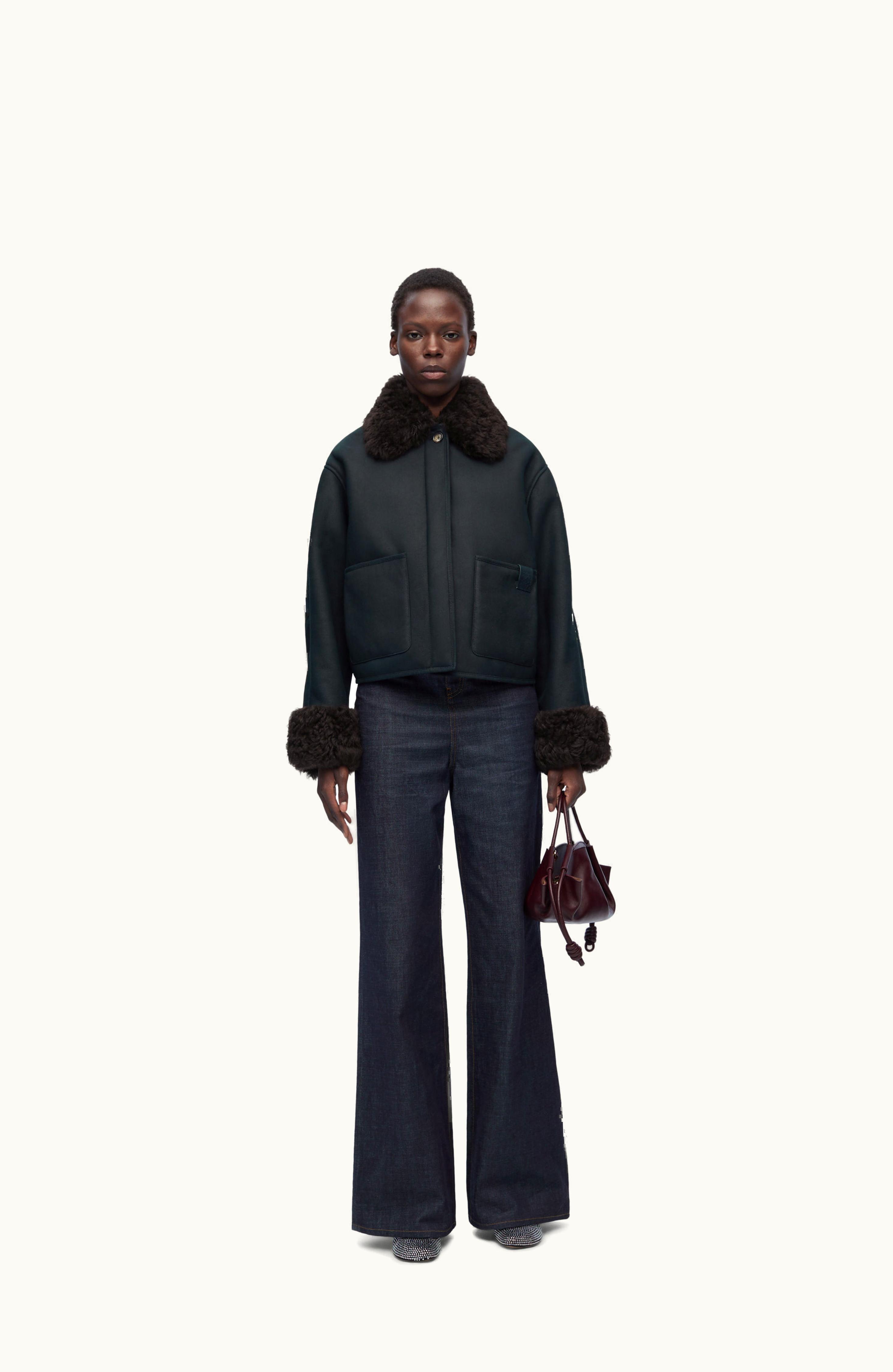 Loewe Jacket In Shearling Navy / Brown | GLINT