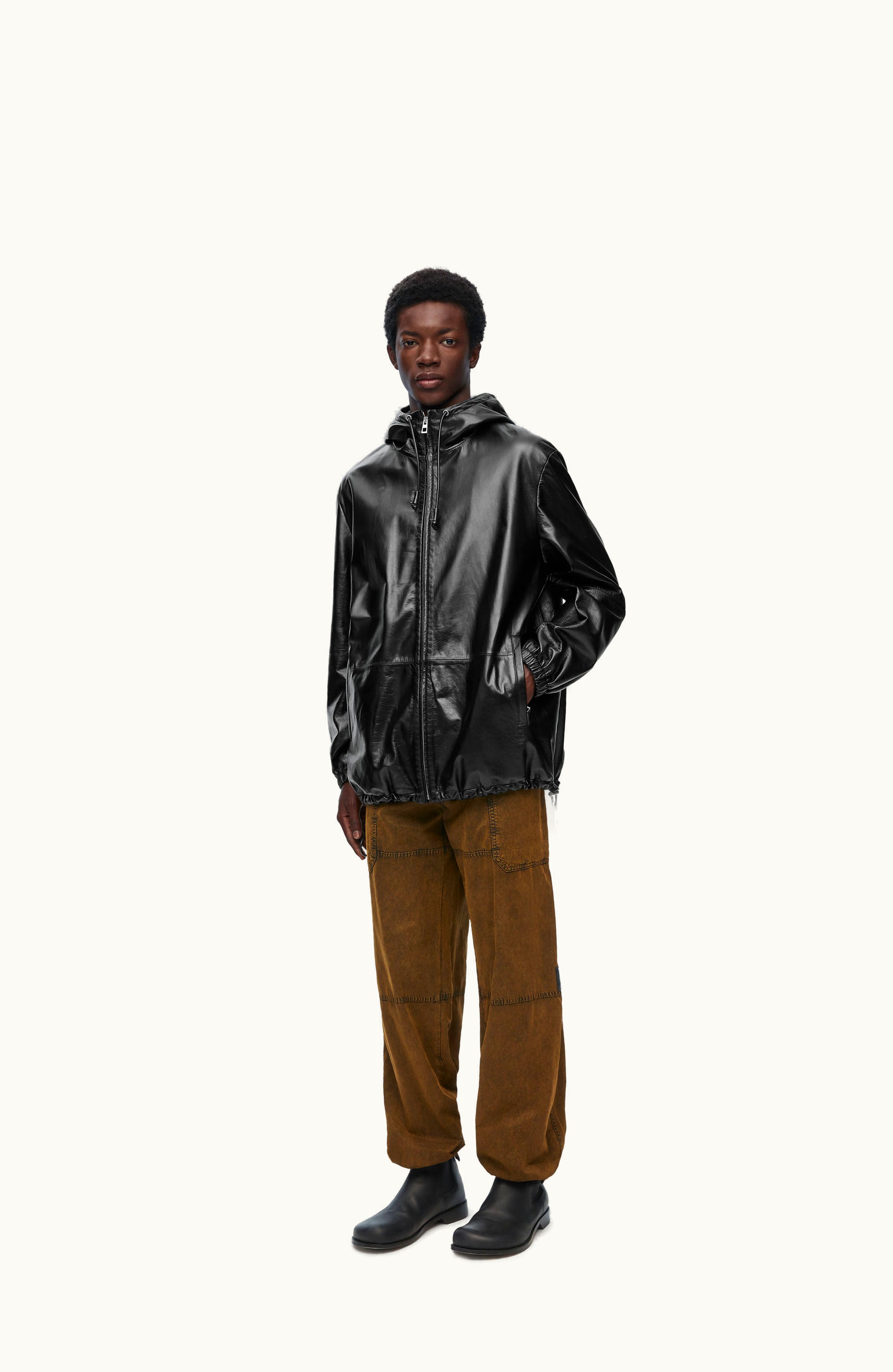 Loewe Packable Hooded Jacket In Satin Nappa Lambskin Black | GLINT