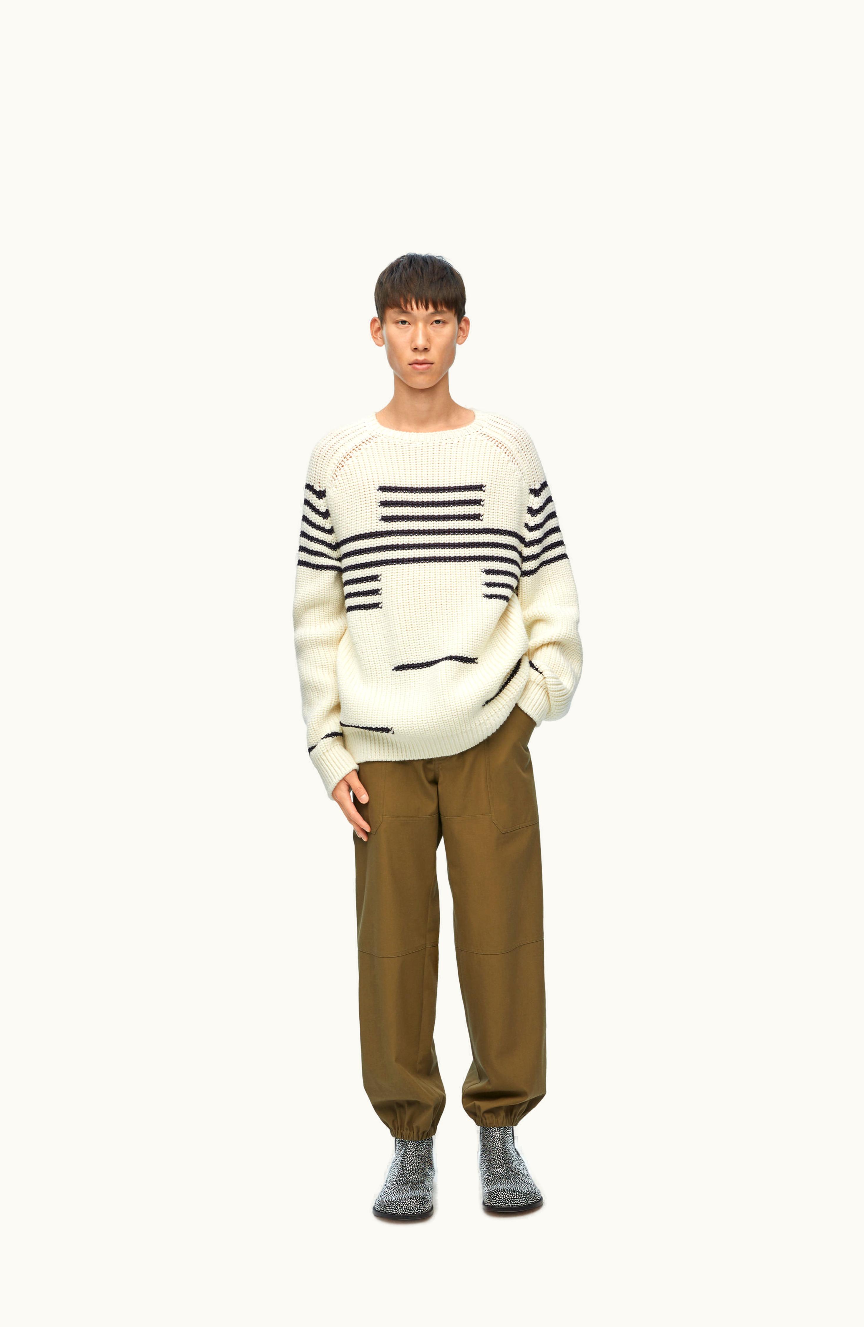Loewe Sweater In Wool Blend Off-white / Navy | GLINT