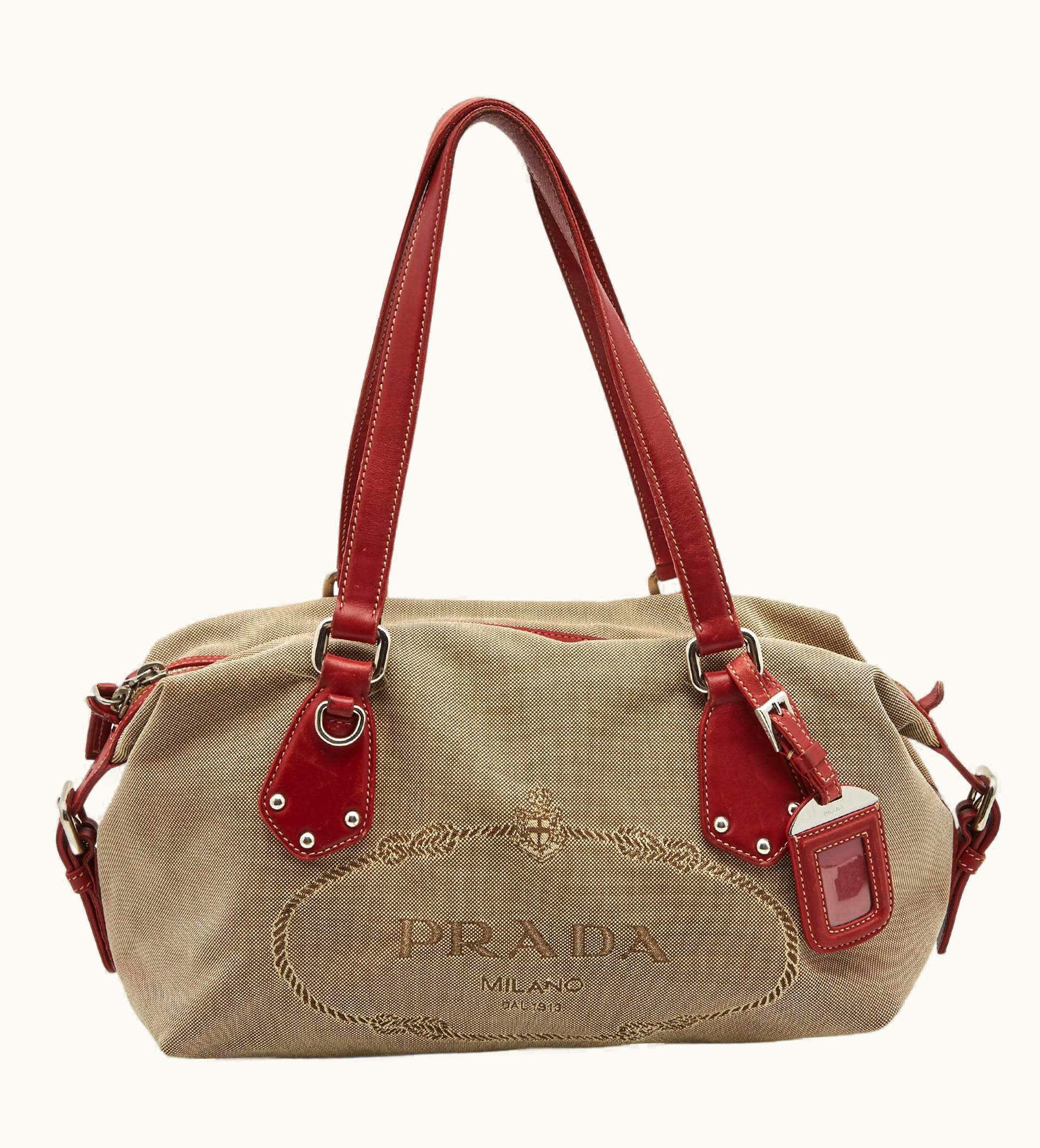 Prada Beige/Red Jacquard Logo Canvas Shoulder Bag | GLINT