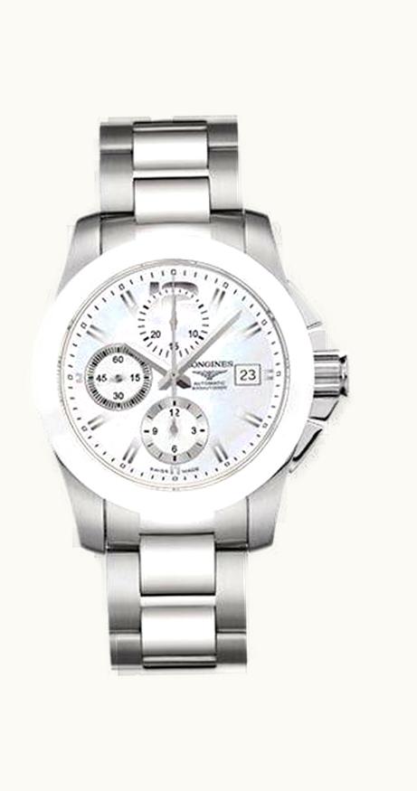 Longines Conquest Chronograph White Ceramic Bracelet L3.661.4.86.6 (aka: L36614866) | GLINT