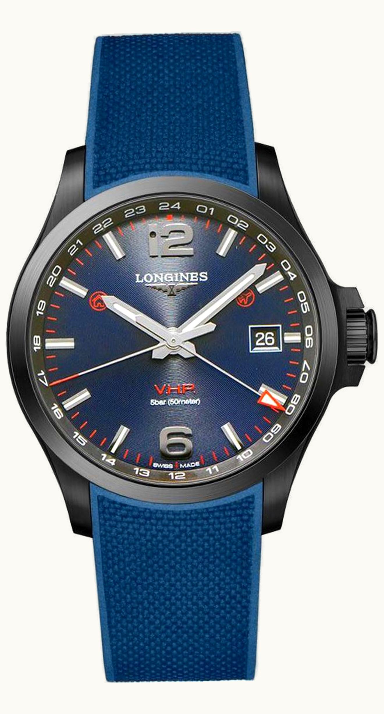 Longines Conquest V.H.P. GMT 41 PVD / Blue / Rubber L3.718.2.96.9 | GLINT