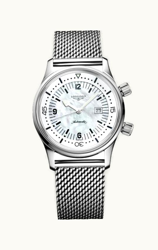 Longines Legend Diver 36 Stainless Steel / MOP / Mesh L3.374.4.80.6 | GLINT