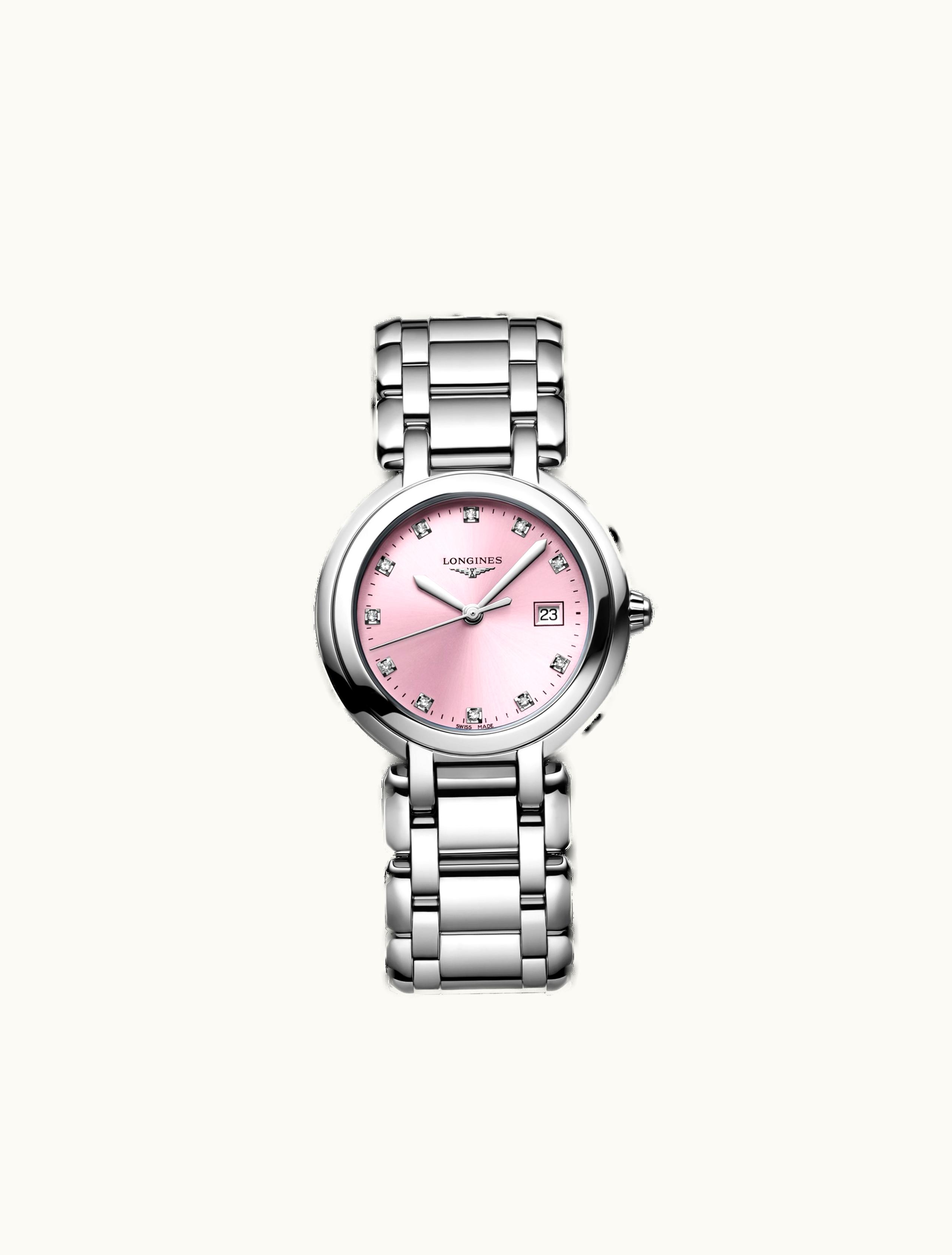 Longines PrimaLuna Quartz 30 Stainless Steel / Pink / Bracelet L8.122.4.99.6 | GLINT