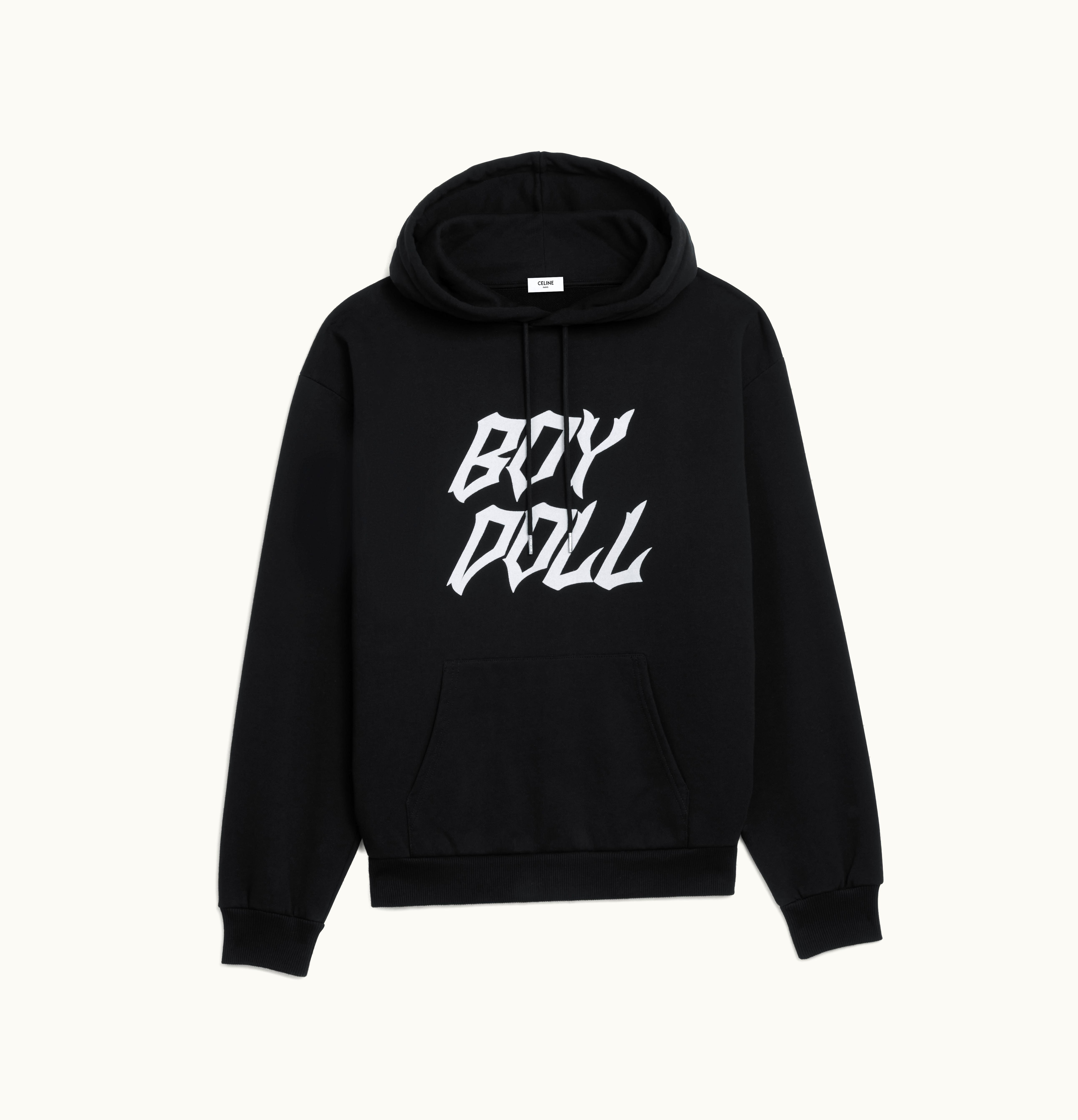 Celine Loose Boy Doll Hoodie In Cotton Fleece Black / White | GLINT