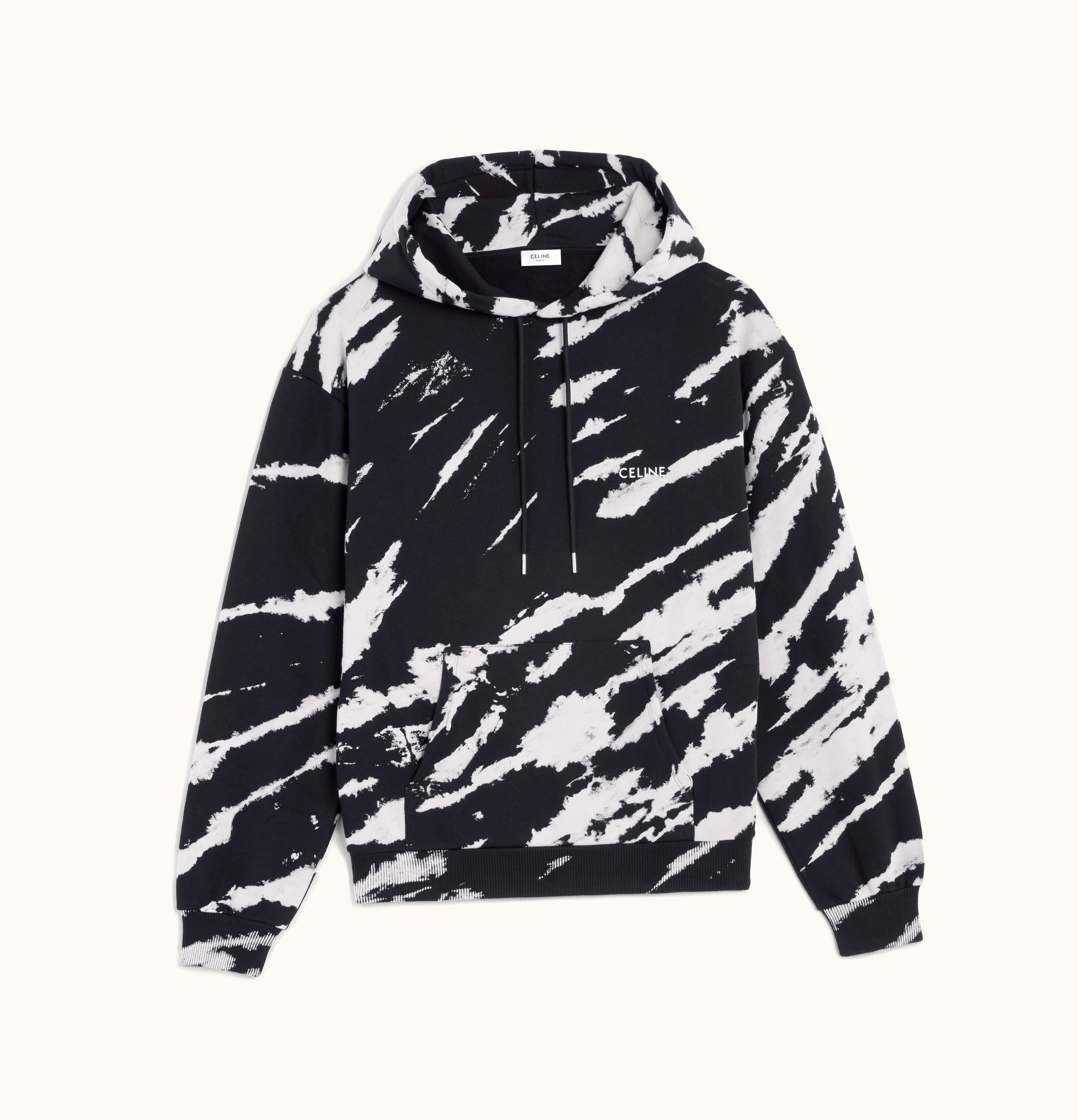 Celine Loose Tie-Dye Hoodie In Jersey Fleece Black / White | GLINT