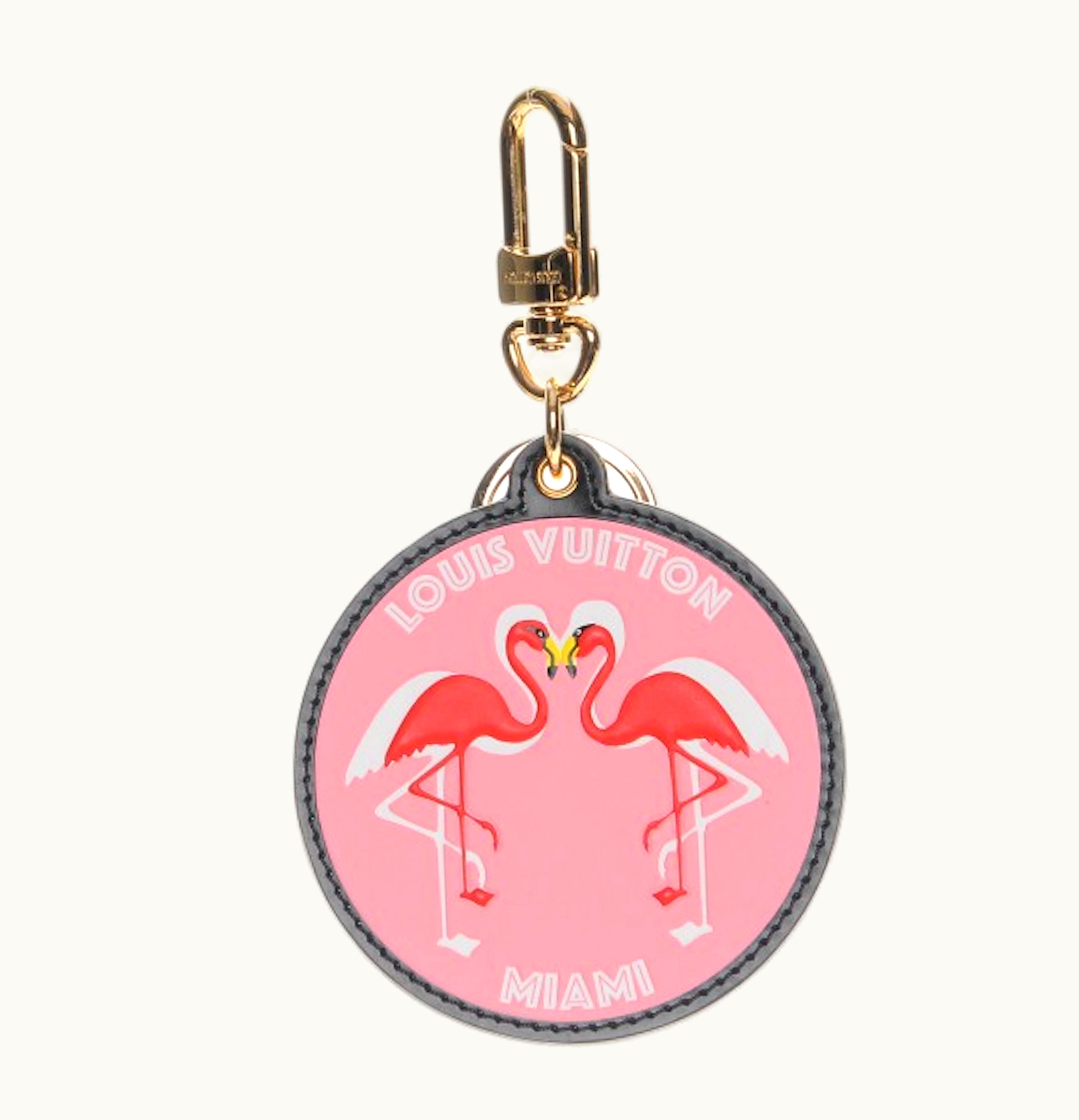 Louis Vuitton Bag Charm Key Holder World Tour Flamingo Leather Red Pink | GLINT