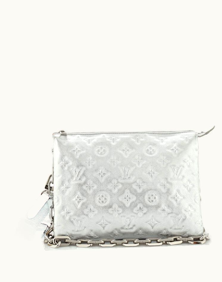 Louis Vuitton Coussin Bag Monogram Embossed Lambskin PM Silver Red | GLINT
