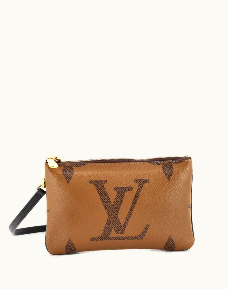 Louis Vuitton Double Zip Pochette Reverse Monogram Giant Coated Canvas Brown | GLINT