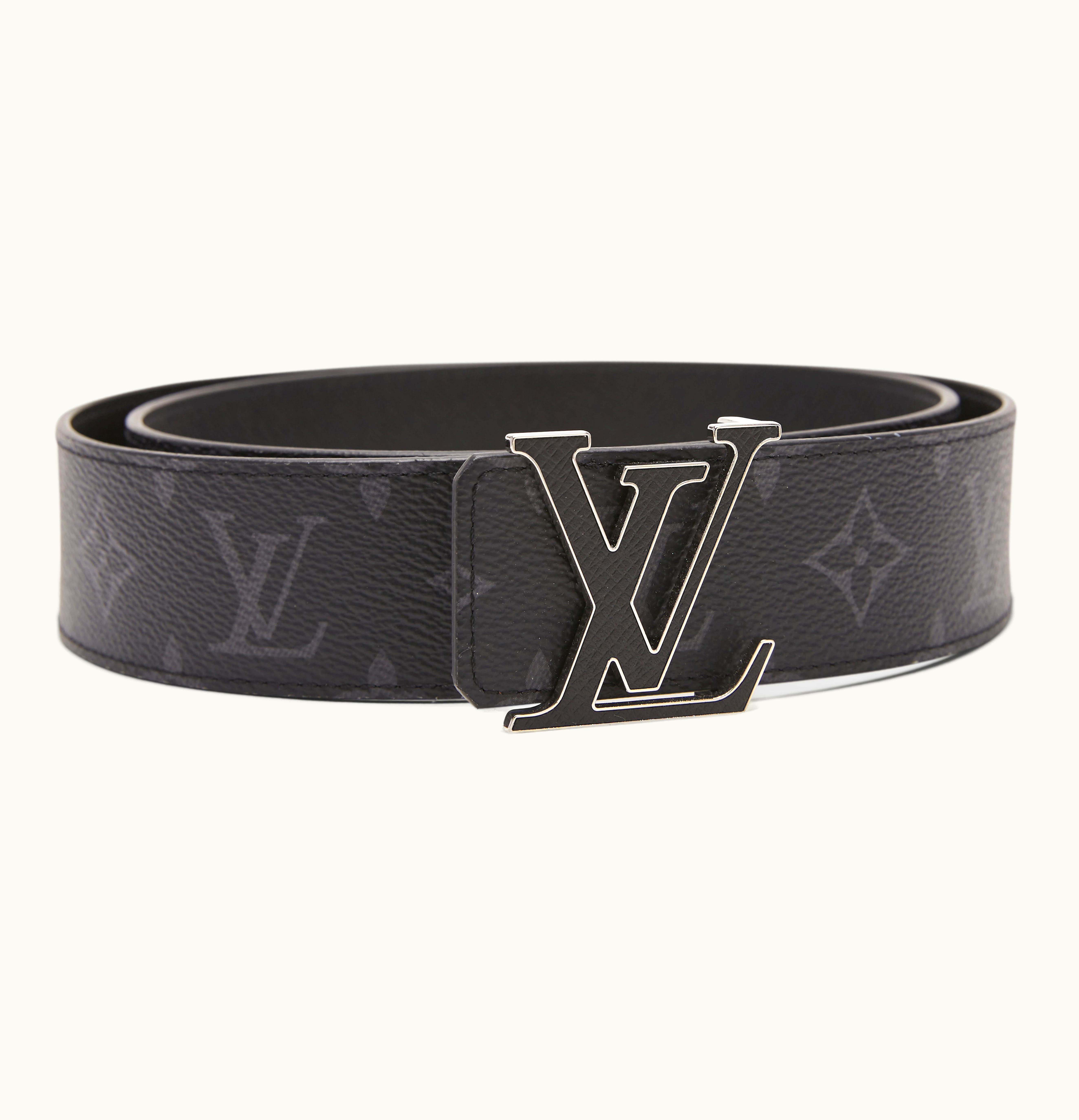 Louis Vuitton LV Initiales Reversible Belt Monogram Eclipse Taiga 40MM Black | GLINT