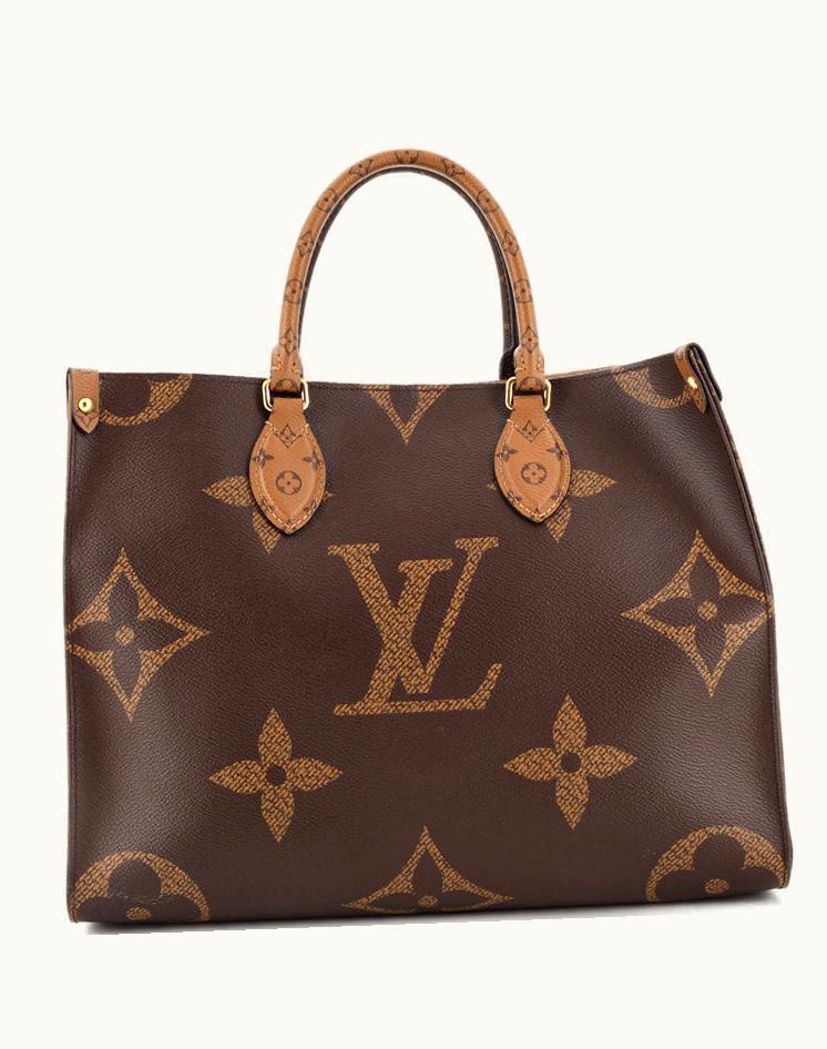 Louis Vuitton ML4220 OnTheGo Tote Reverse Monogram Giant MM Brown Red Gold | GLINT