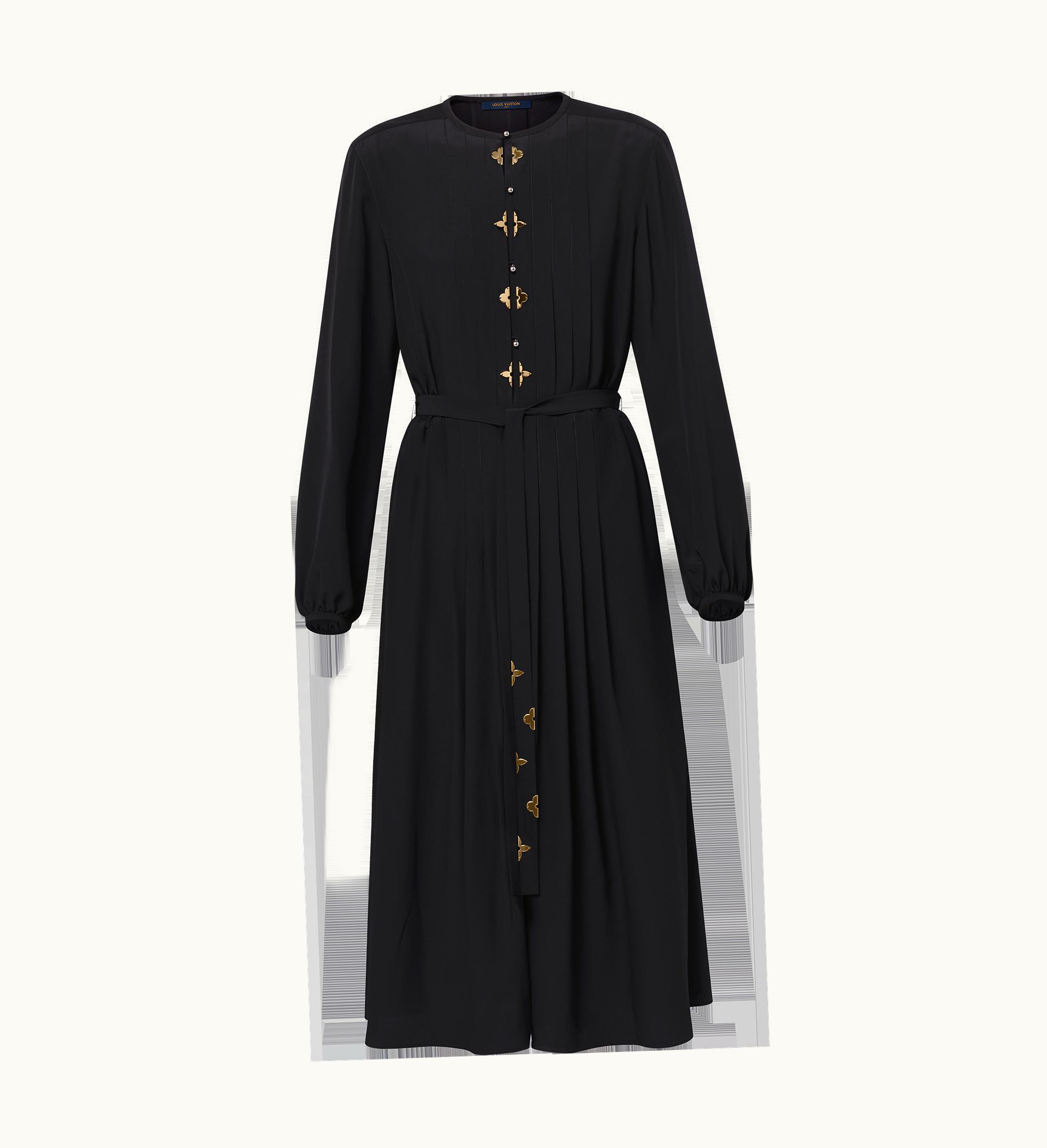 Louis Vuitton Monogram Accent Pleat Dress Black | GLINT